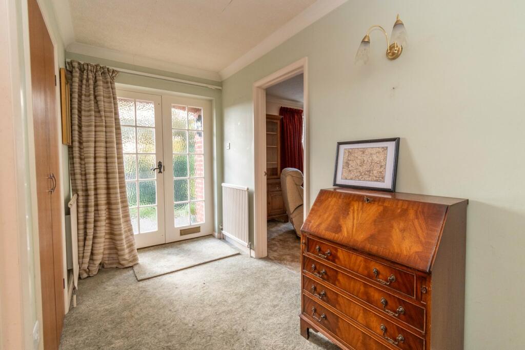 A spacious detached 2 bedroom bungalow with driveway parking, large garage/workshop and 1/5 acre (sts) gardens backing onto countryside. No chain.