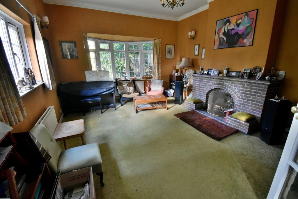 This is a character property located in Ferndown South, Dorset. The house has 4 bedrooms and 2 bathrooms. While the property requires renovation, it features a large garden, a garage, and a patio. The property is listed for £800,000.