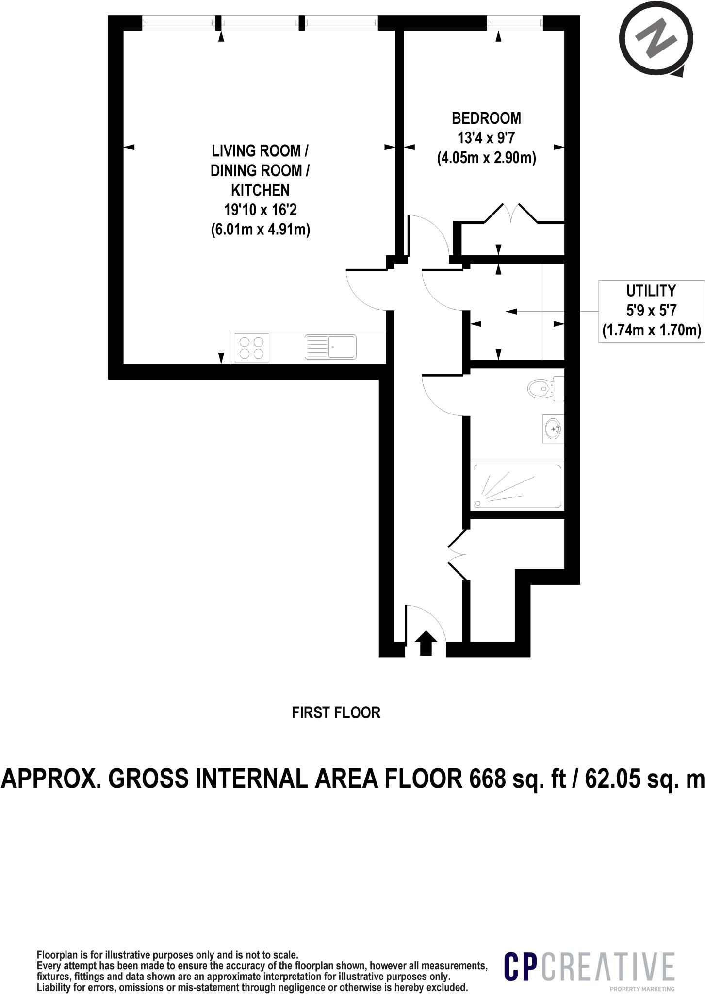 This property is a modern one bedroom apartment located in the heart of London. The apartment is in excellent condition and benefits from a modern kitchen and bathroom. The location is excellent, with easy access to public transport and local amenities. The price is slightly above average for the area, but considering the condition and location, it is a reasonable price.