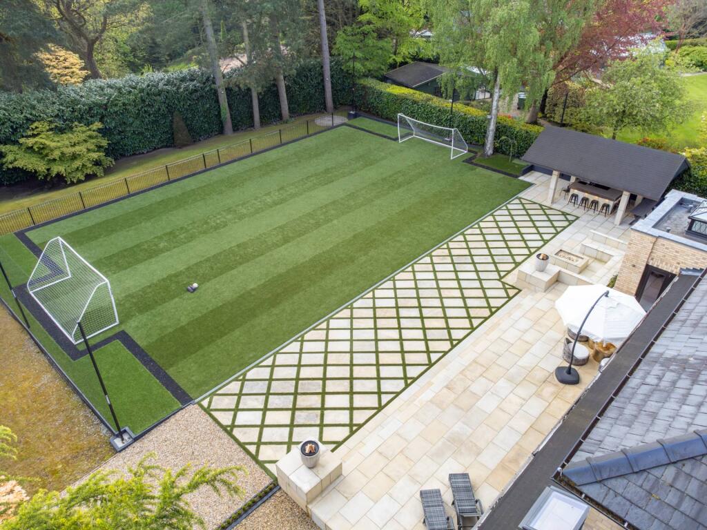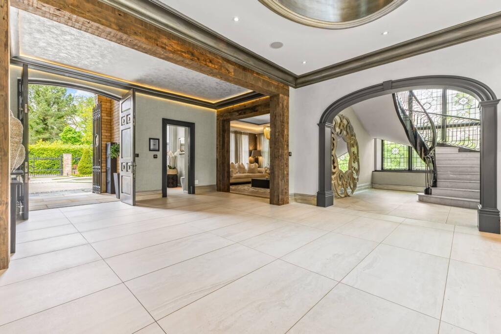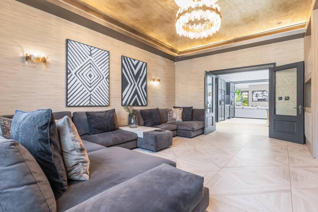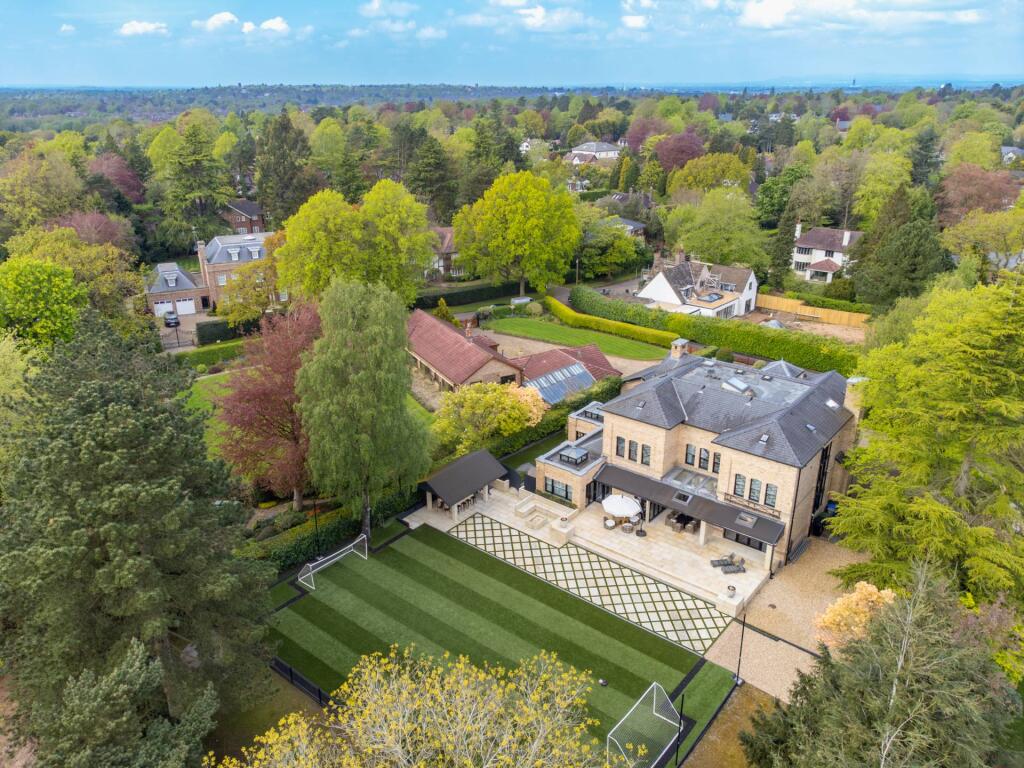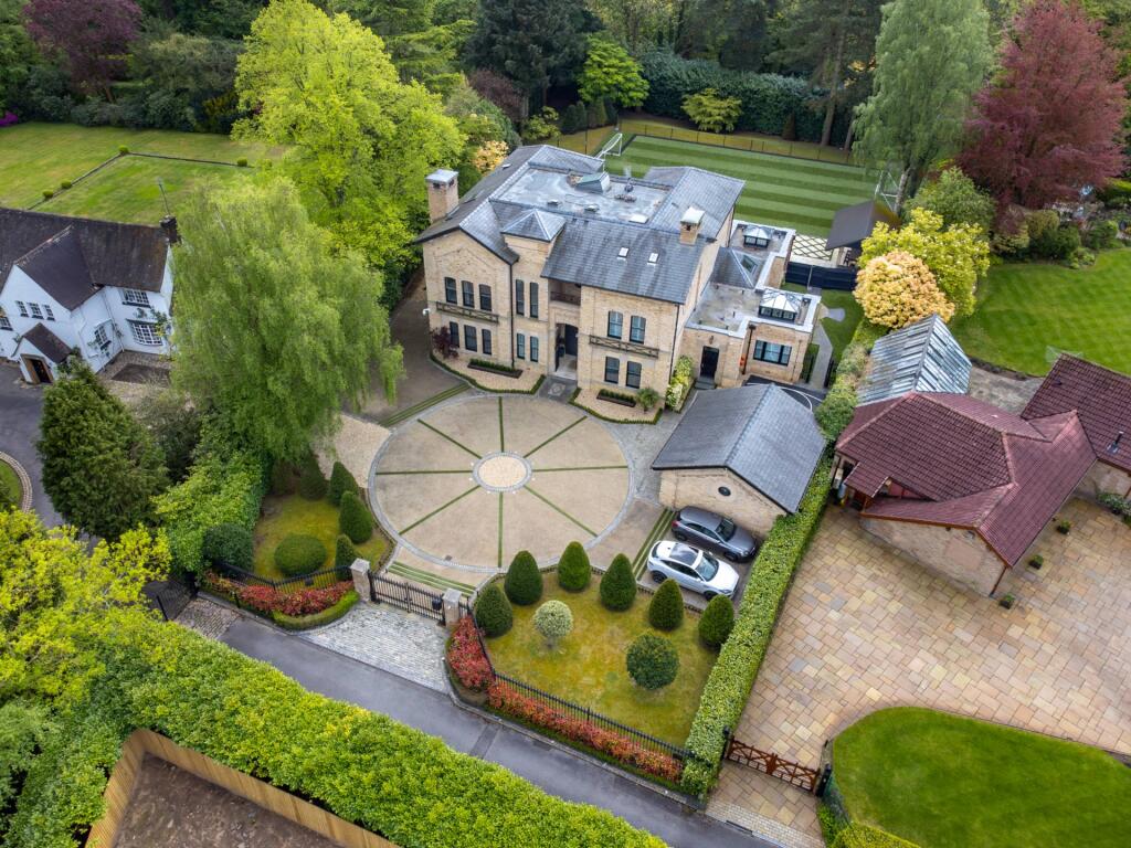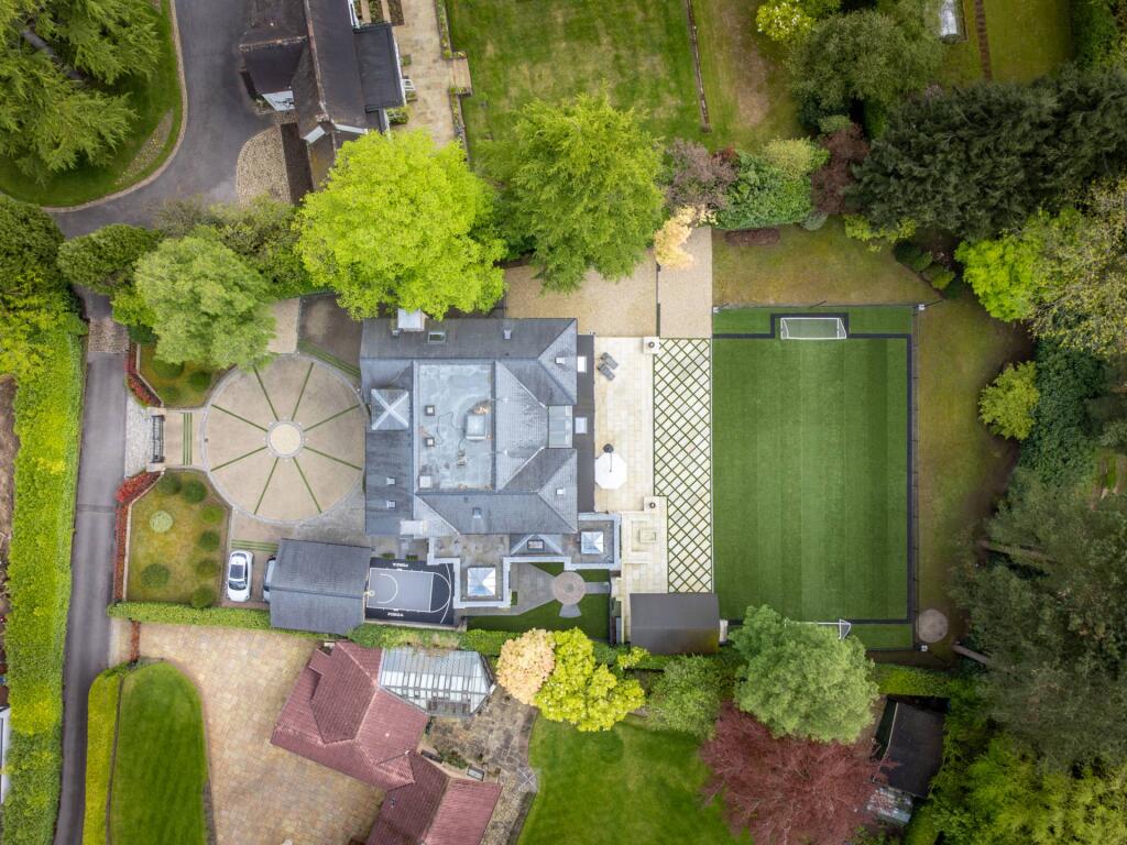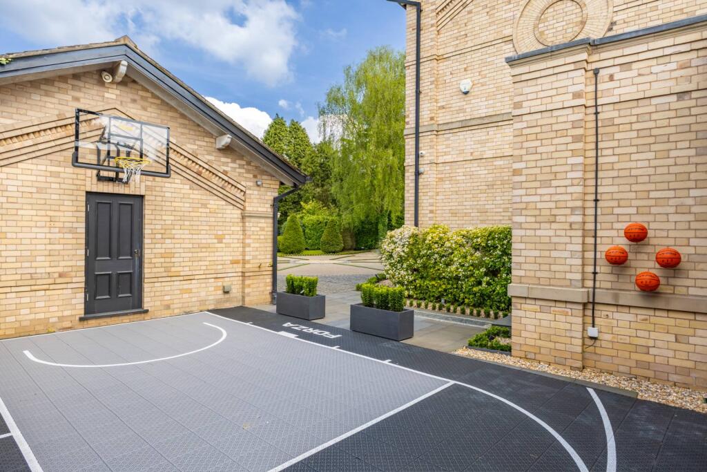 Majestic, detached superhome with 7 bedrooms, 7 bathrooms, a floodlit football pitch, basketball court, detached garage, bespoke cinema, large home gym, physio room, entertainment level, outdoor cabana. Planning permission for a pool. Exquisite throughout in 0.75 acre, in a private, secure setting.