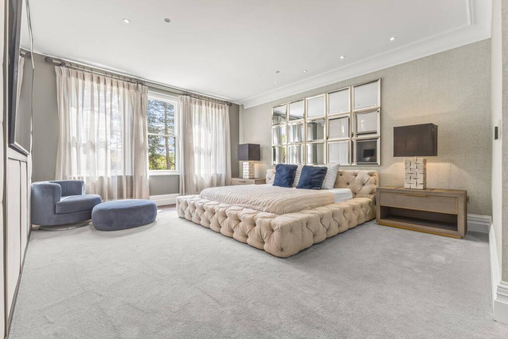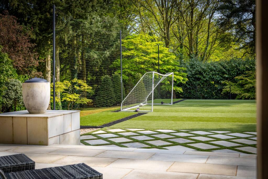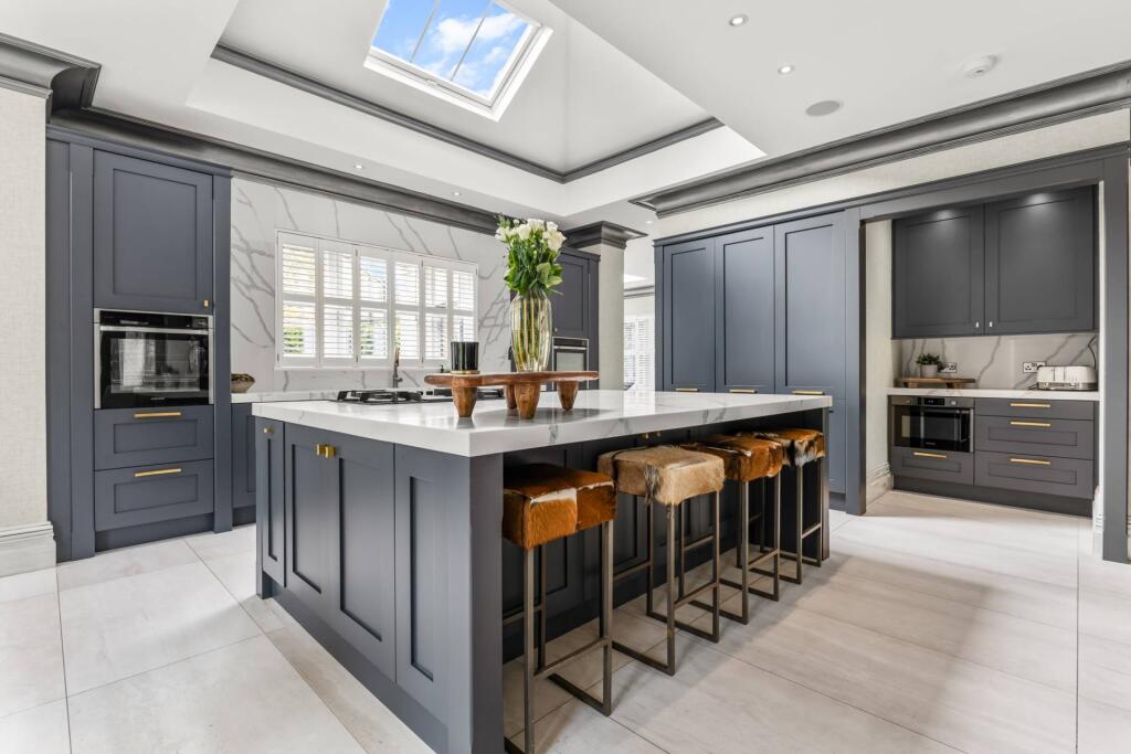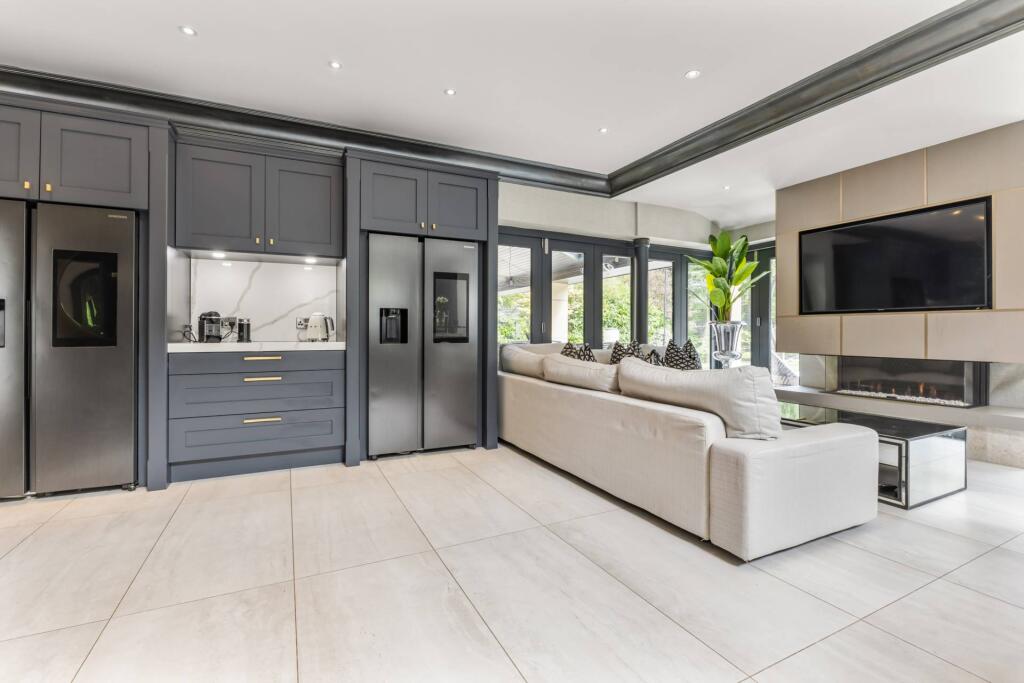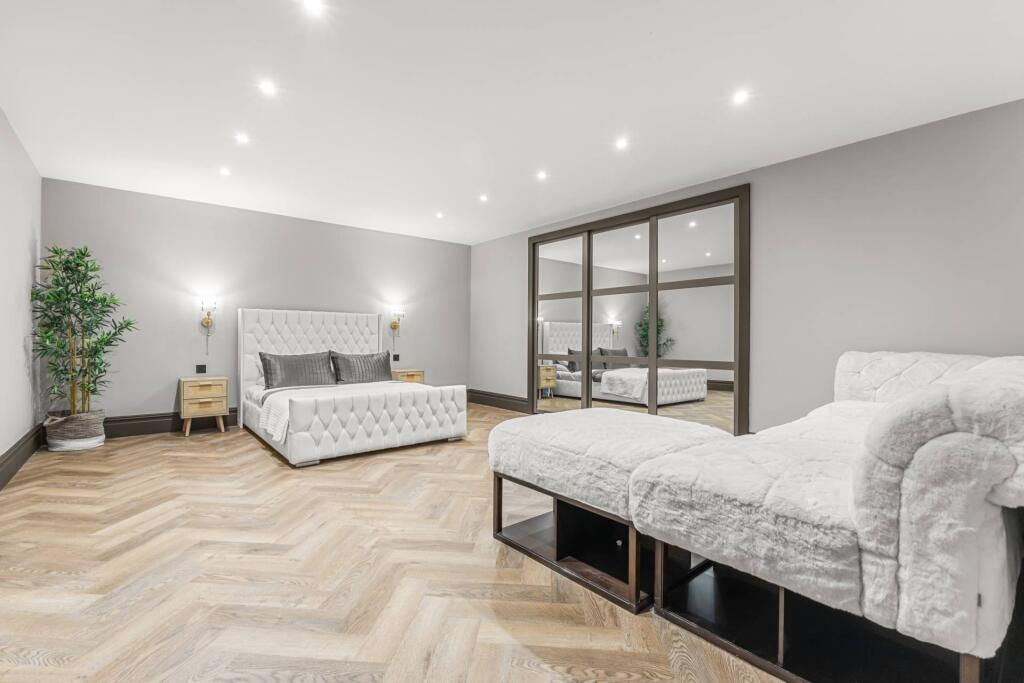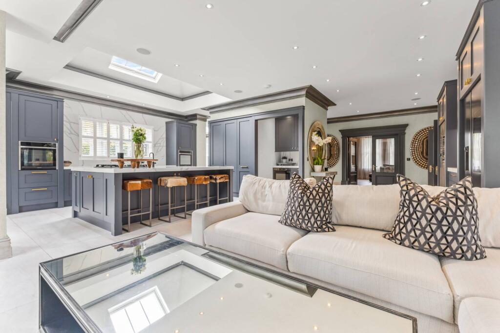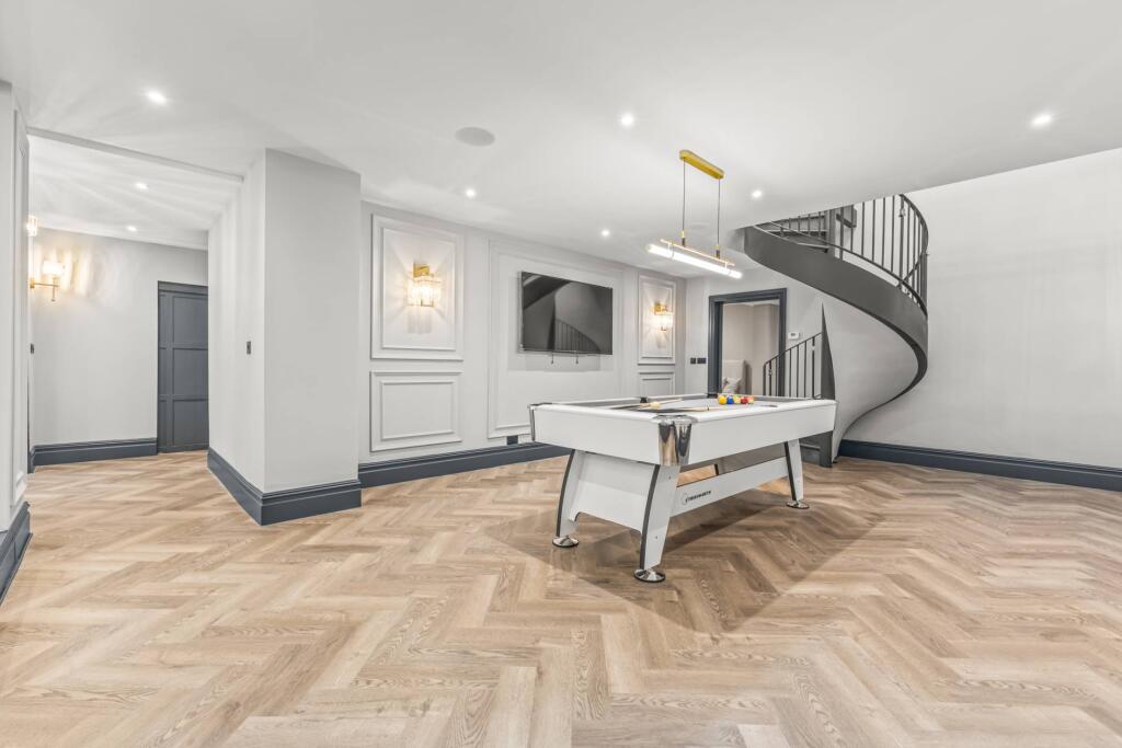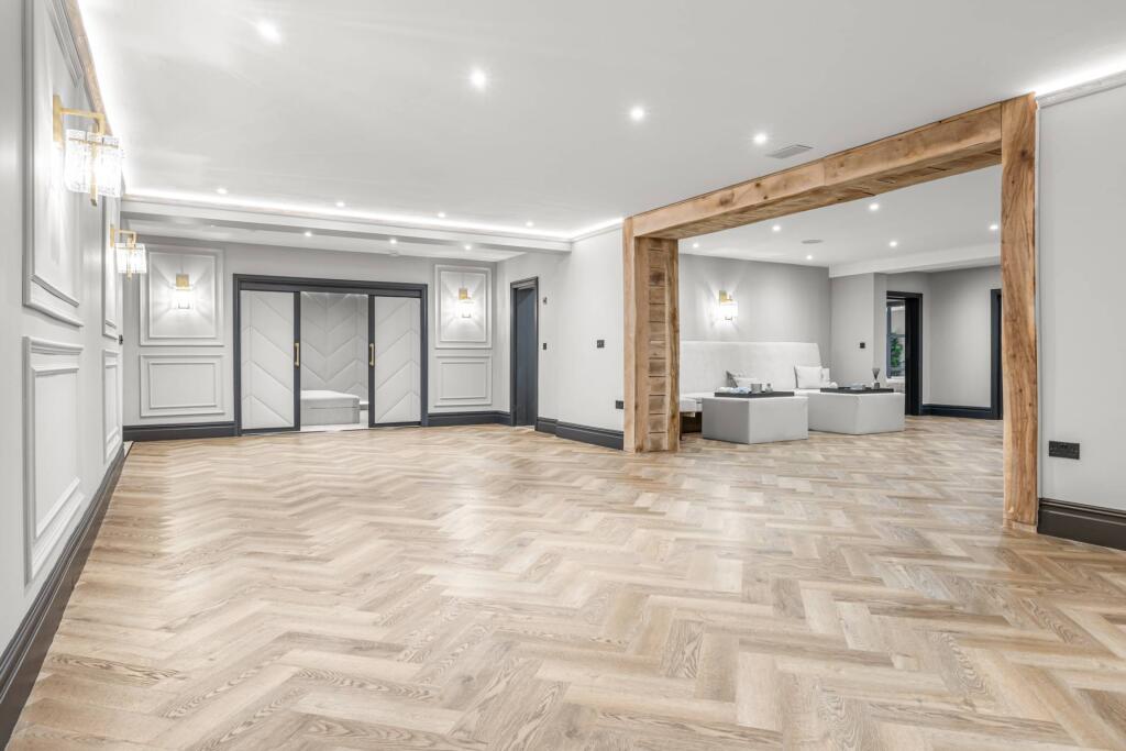 Majestic, detached superhome with 7 bedrooms, 7 bathrooms, a floodlit football pitch, basketball court, detached garage, bespoke cinema, large home gym, physio room, entertainment level, outdoor cabana. Planning permission for a pool. Exquisite throughout in 0.75 acre, in a private, secure setting.