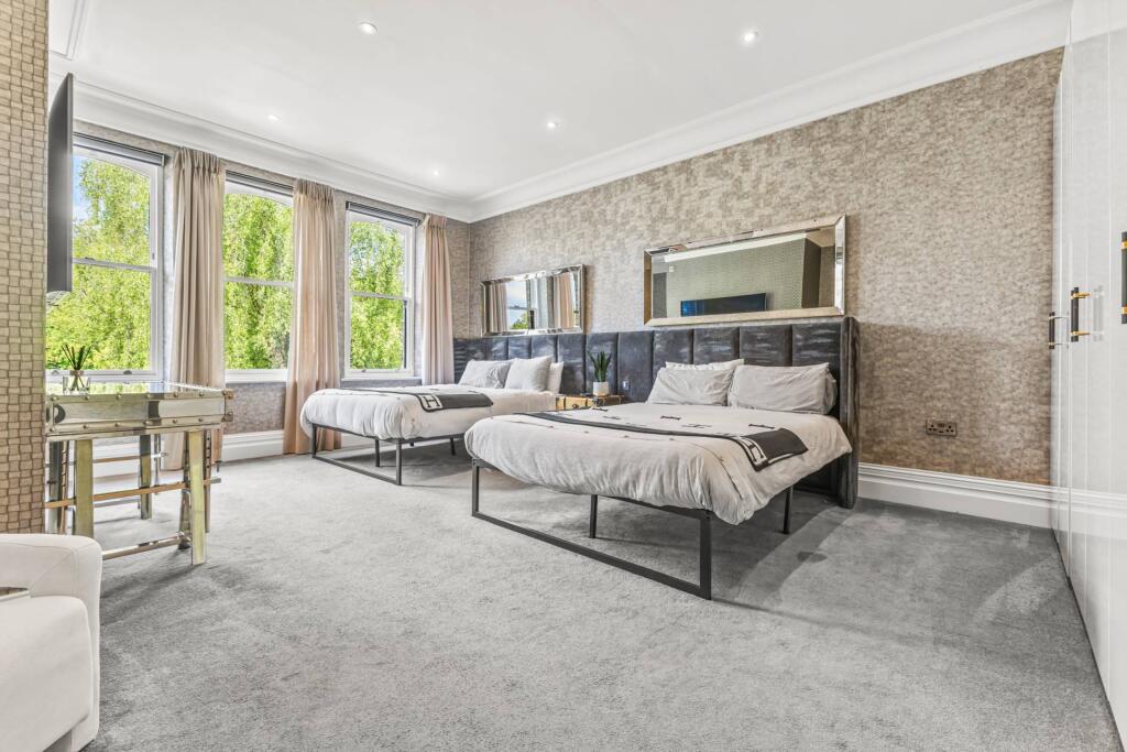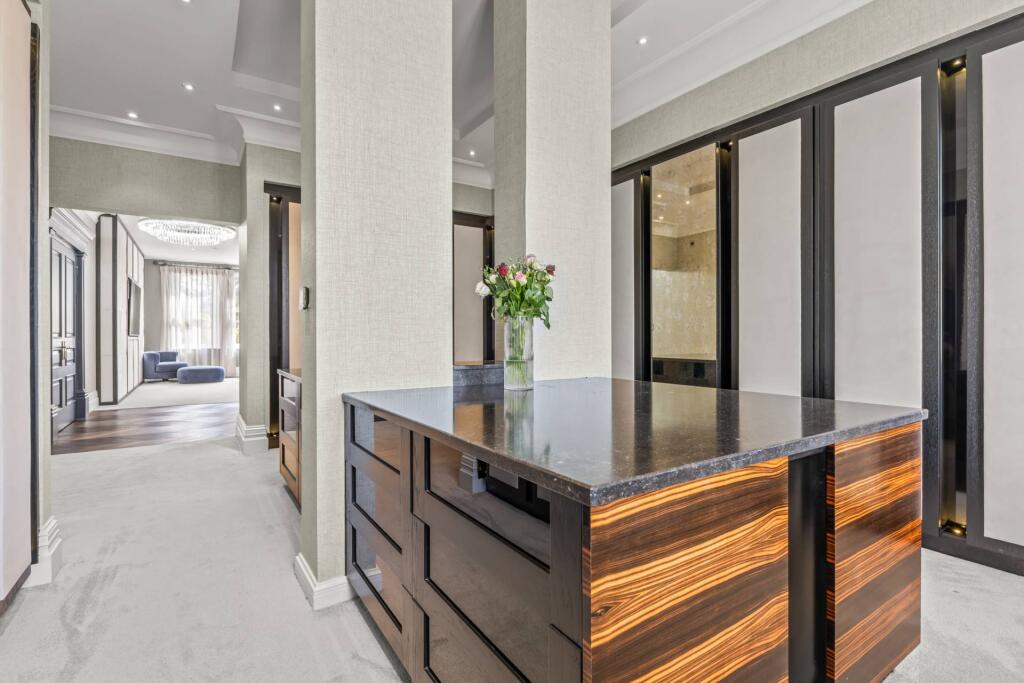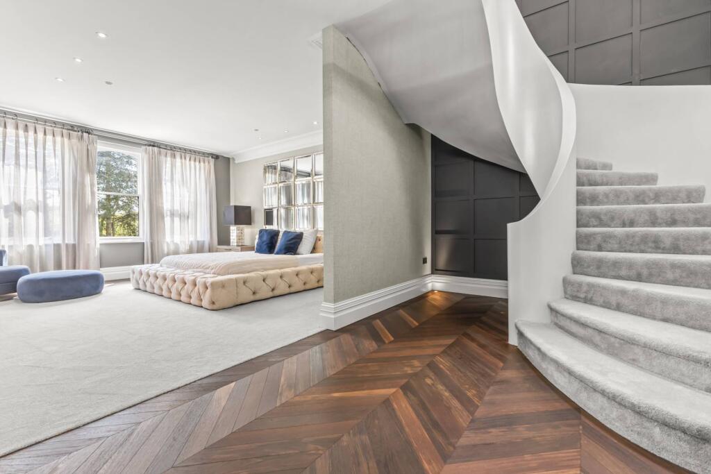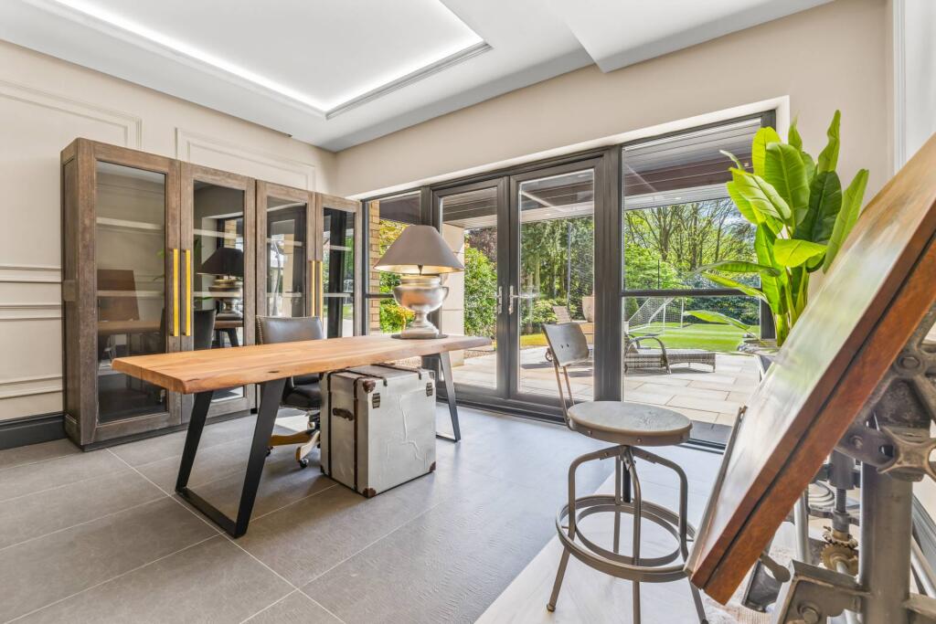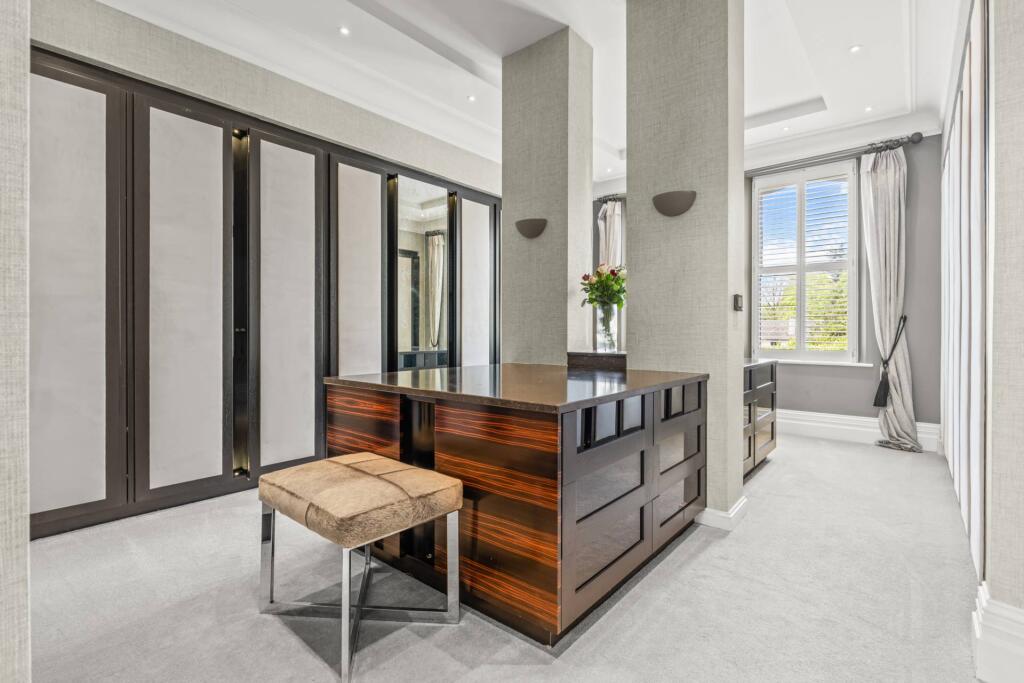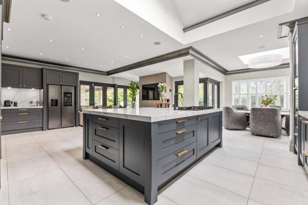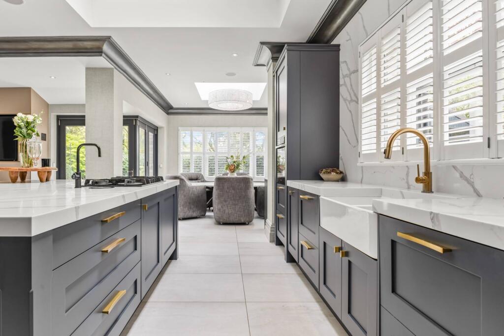 Majestic, detached superhome with 7 bedrooms, 7 bathrooms, a floodlit football pitch, basketball court, detached garage, bespoke cinema, large home gym, physio room, entertainment level, outdoor cabana. Planning permission for a pool. Exquisite throughout in 0.75 acre, in a private, secure setting.