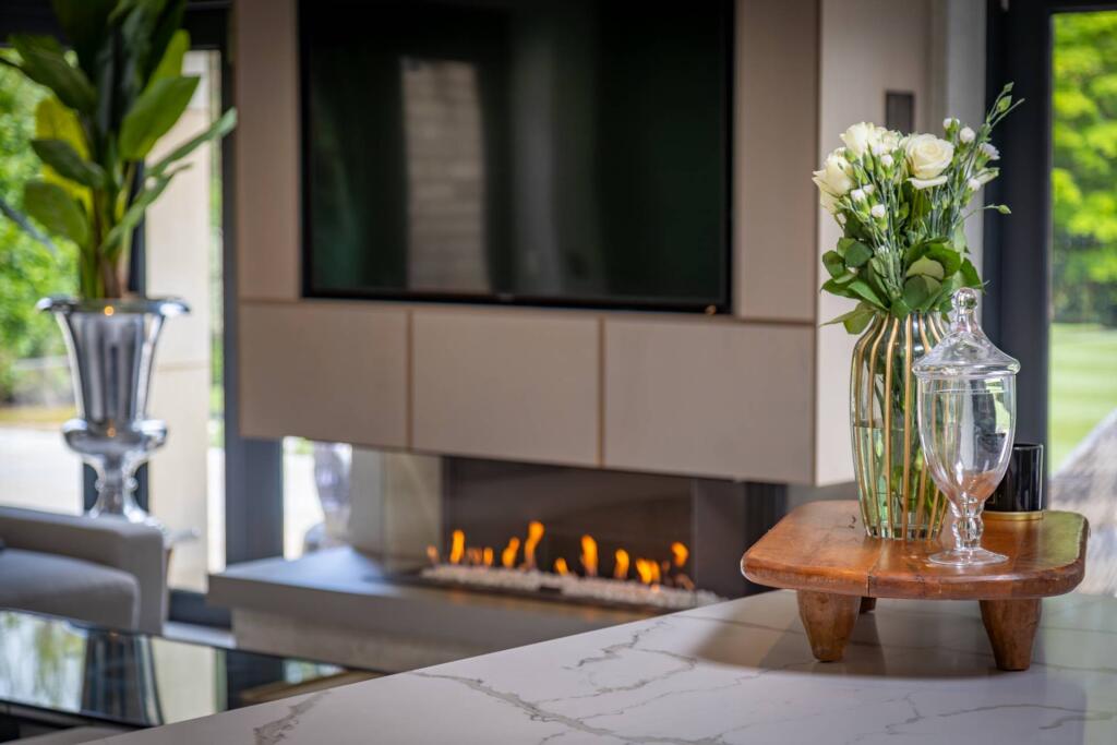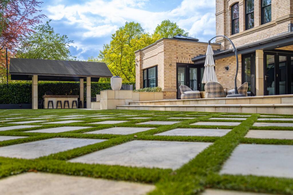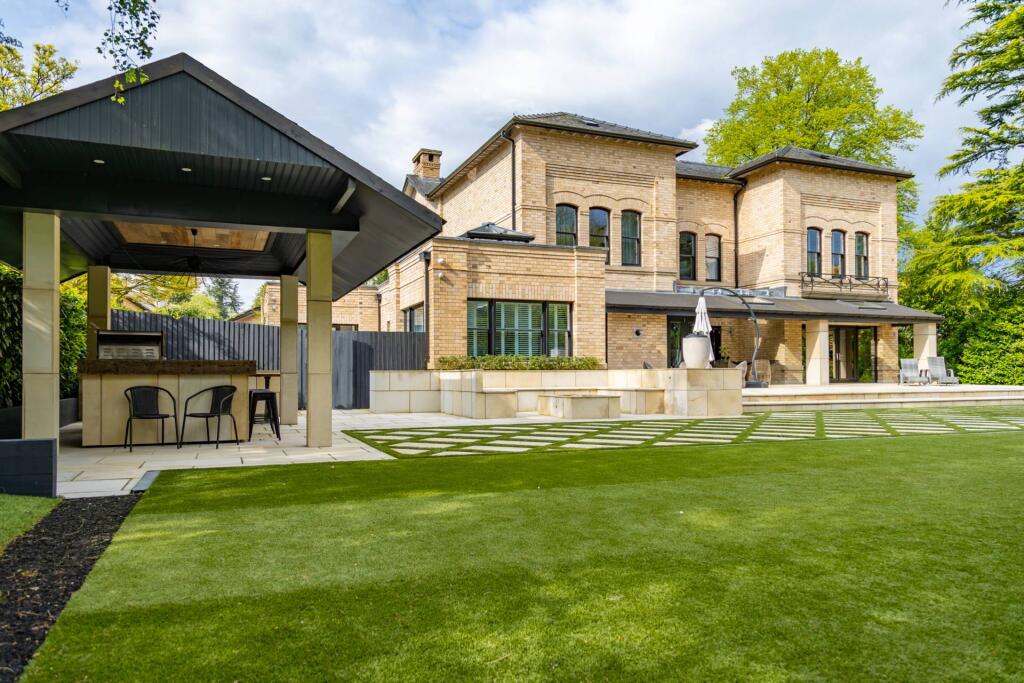 The property is located in the affluent Hale Barns area of Greater Manchester, close to highly-rated schools and train stations. The house itself is in excellent condition, appearing newly built or extensively renovated. It features modern finishes and a contemporary design. The property includes extensive grounds, with a large lawn and patio. While the exact square footage is unknown, preventing a precise price-per-square-foot analysis, the high list price is arguably justified by the property’s superior condition, prime location, and substantial land.