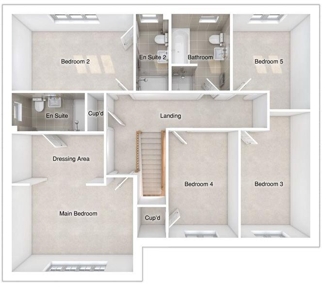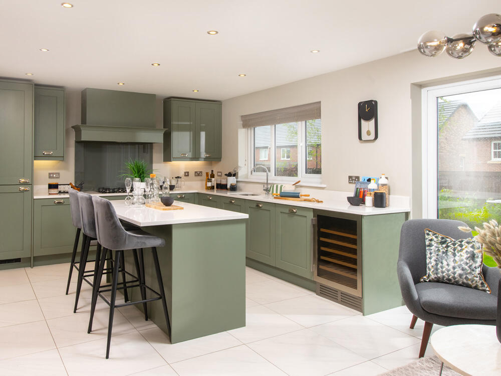 LARGE INTEGRAL GARAGE, offering 1,905 sq ft of space. A FULLY FITTED KITCHEN leads to a dining area/family room with stylish BI-FOLD DOORS & ISLAND, there are also SEPARATE UTILITY & STUDY. Upstairs are 5 bedrooms, 2 with ensuite.