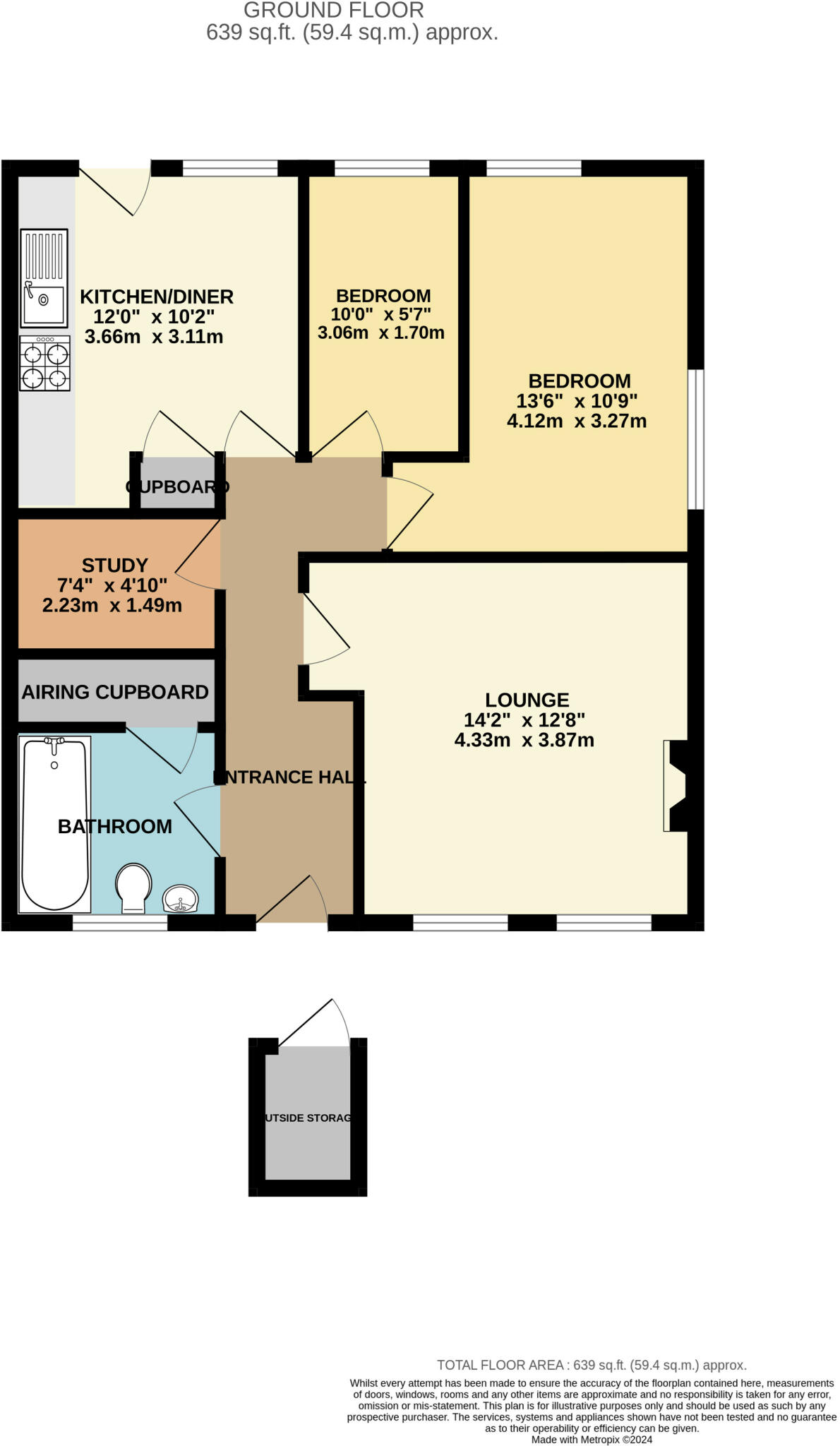 A purpose built ground floor apartment benefiting from two bedrooms, study, kitchen/breakfast room & bathroom. Private rear garden backing onto woodland & private residents parking.