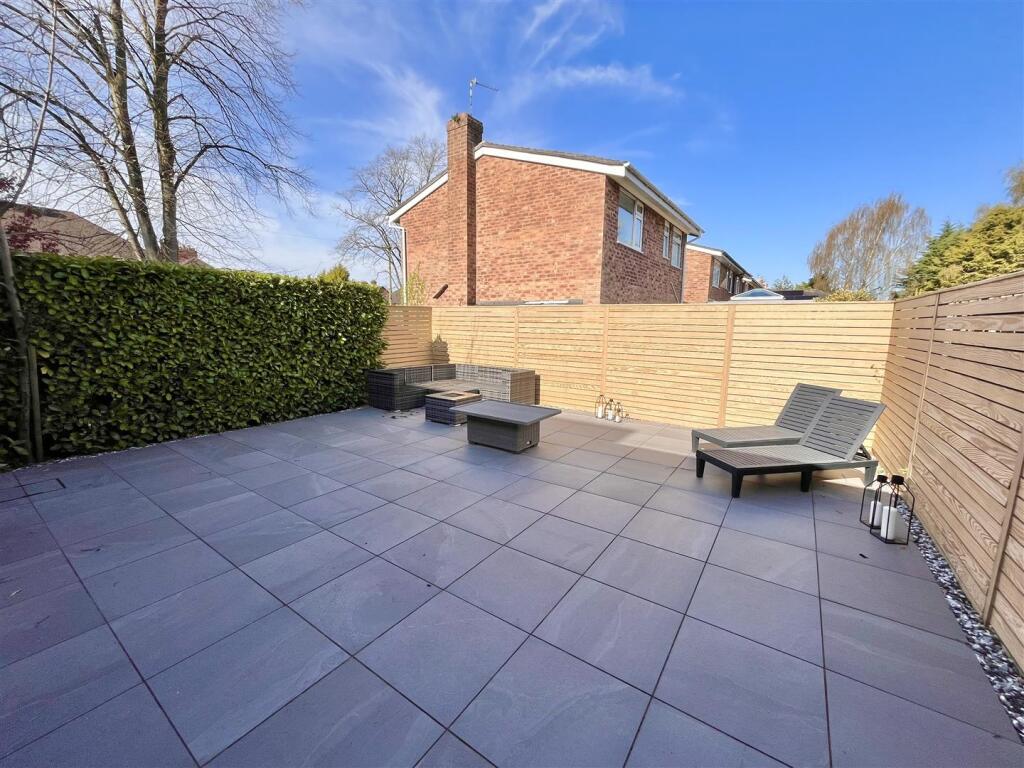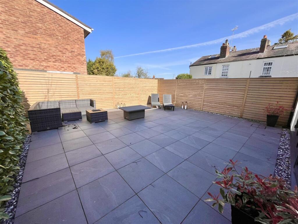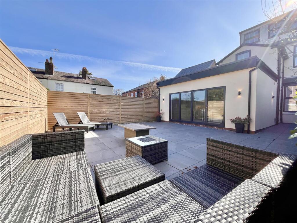 The property includes a sizable, paved patio area, ideal for outdoor entertaining. While the plot size is listed as 0.00 sqft, the images clearly show a substantial outdoor space. This adds considerable value to the property, especially in a desirable area like Alderley Edge.