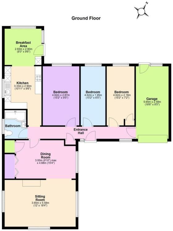 This property is a 3-bedroom detached bungalow located in Greenhill, Herne Bay. The location benefits from being close to Briary Primary School (0.34km) and Hampton Primary School (0.51km), both rated as good by Ofsted, as well as Herne Bay High School (1.00km), also rated good. Herne Bay train station is approximately 1.62km away, providing convenient access to other towns and cities. The property itself appears to be in good condition, well-maintained, and benefits from a garden. While the exact square footage is not provided, the list price of £395,000 seems reasonable when compared to the average price of £381,799 for similar properties in the area. The average price per sqft in the area is £492, but without the sqft of this property it is difficult to make a definitive statement on the price.