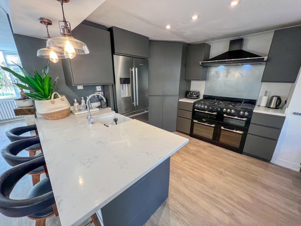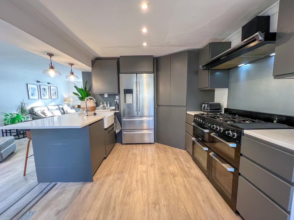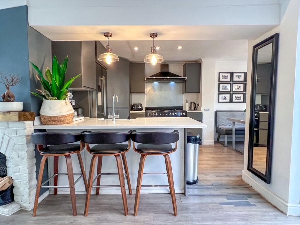 This end-of-terrace property on Tonbridge Road, West Molesey, offers a well-presented family home with four bedrooms and two bathrooms. The interior has been modernised, featuring a contemporary kitchen and comfortable living spaces. The property benefits from a garden with decking and lawn, providing a pleasant outdoor area. Its location offers convenient access to local schools and transportation links, making it an attractive option for families. The asking price of £589,950 appears reasonable given the property’s size, condition, and location within the West Molesey market.