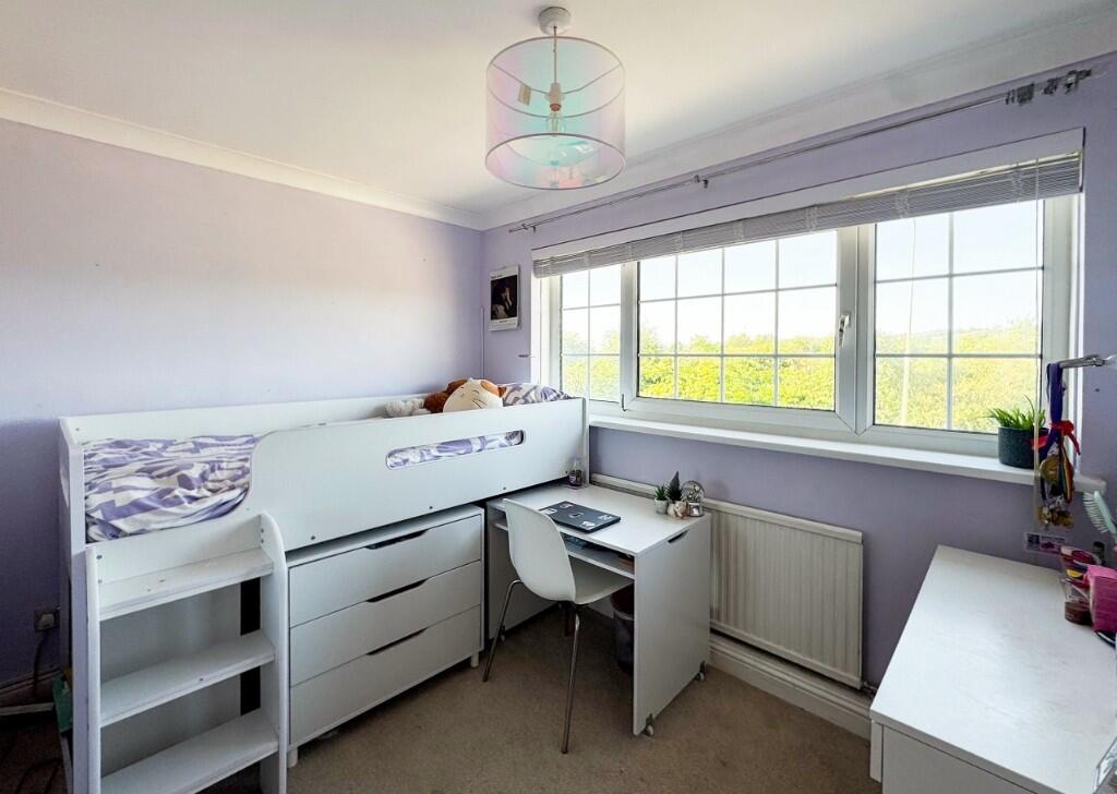 This four-bedroom detached house is located in Waunlon, Porthcawl, a town in Bridgend County, Wales. The property benefits from a good-sized rear garden with patio area, ideal for outdoor entertaining. The interior is presented in good condition, with modern fixtures and fittings throughout. The kitchen and bathrooms appear recently updated. The property is within proximity to local schools and Pyle train station, offering convenient access to transportation. While the plot size is not specified, the images suggest a manageable garden. The list price of £425,000 is higher than the average price for the area (£292,326), but considering the property’s condition, features, and location, it may represent reasonable value depending on the actual square footage and other factors not included in this analysis.