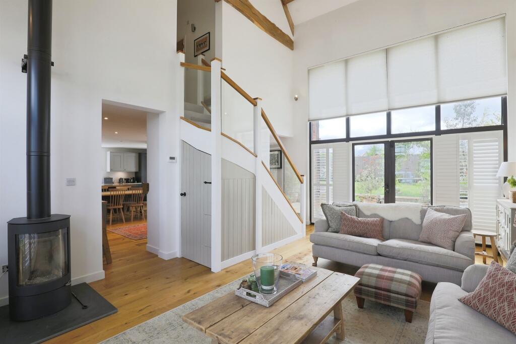 A bespoke restored barn conversion offering modern and contemporary living with historic farm and country characteristics throughout. The barn offers beautiful open plan accommodation, three bedrooms upstairs with the master equipped with en-suite shower room and family bathroom!