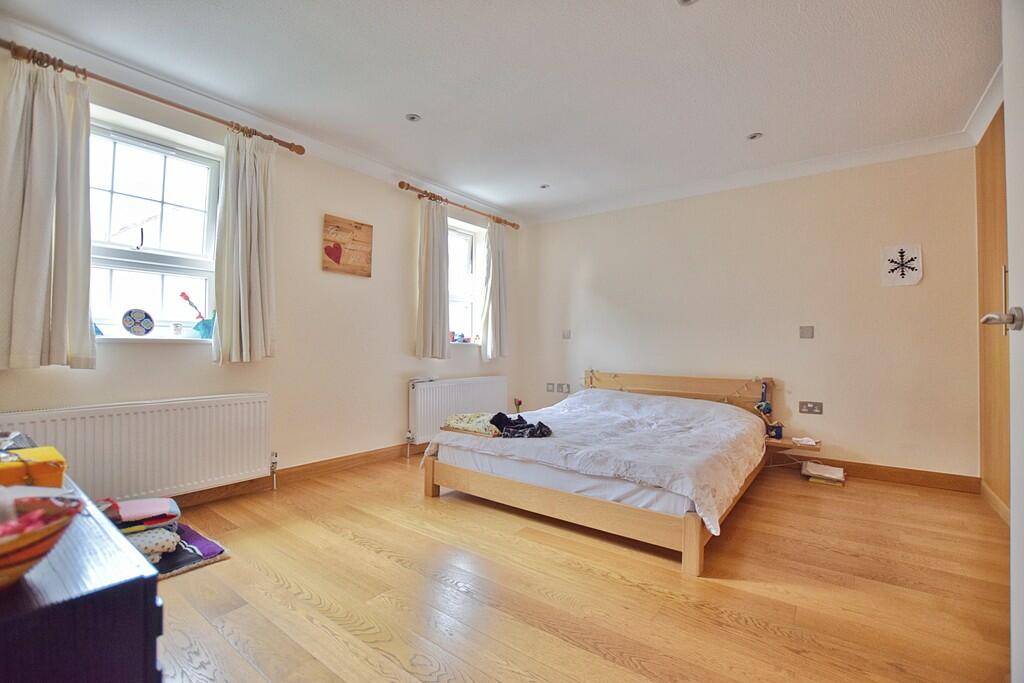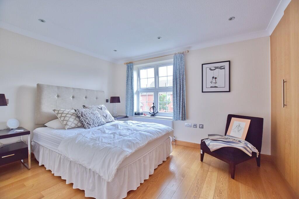 End of terrace modern two storey Georgian style townhouse set in walled square overlooking communal gardens. 2 double wood floored bedrooms with tiled family shower room. Downstairs cloakroom. Reception room with marble floors and french doors opening to private patio garden. Modern kitchen. Th...