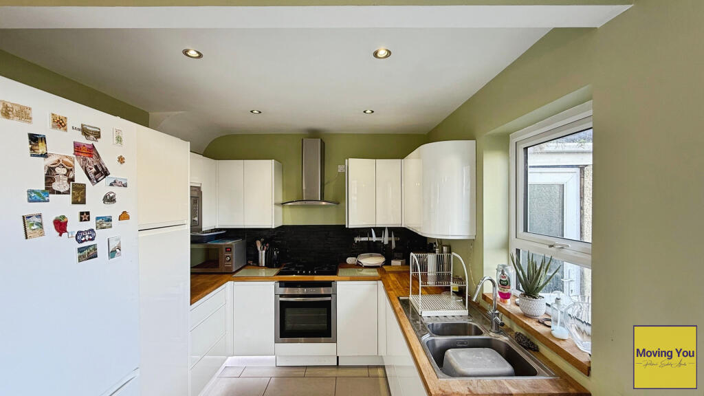 This is a three-bedroom terraced house on Broomhill Road, Brislington, Bristol. The property is listed with Moving You estate agents. The house benefits from its proximity to local schools and transportation links. The property appears to be in generally good condition, with a modern kitchen and updated decor, although the bathroom could use some modernisation. The rear garden offers a mix of paved and lawned areas, along with some outbuildings that require attention. The asking price of £335,000 seems reasonable given the location, condition, and features of the property.