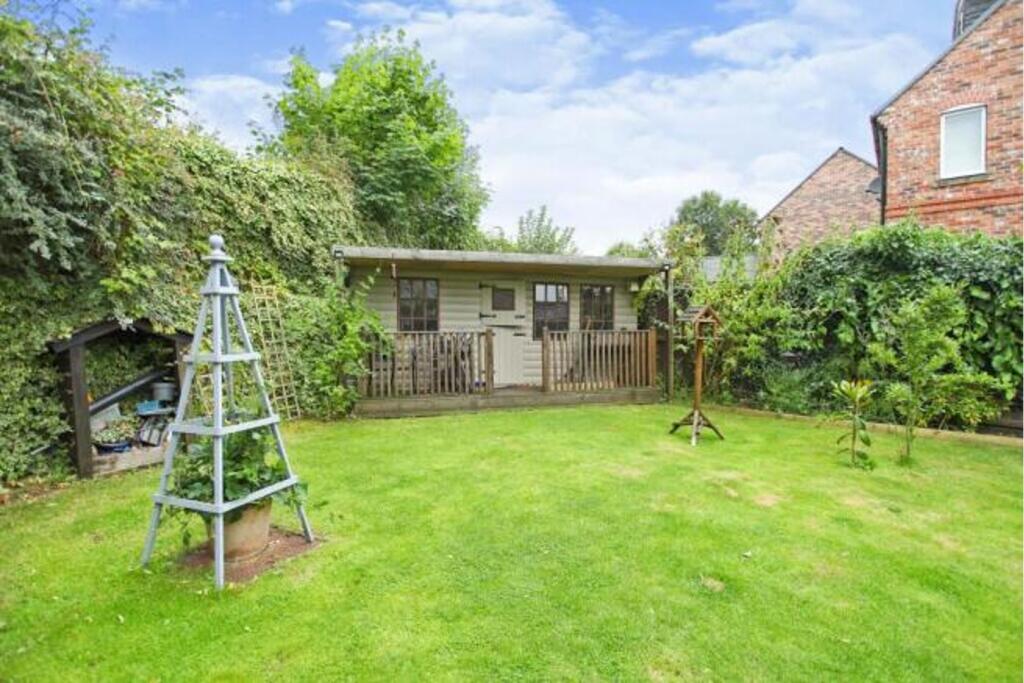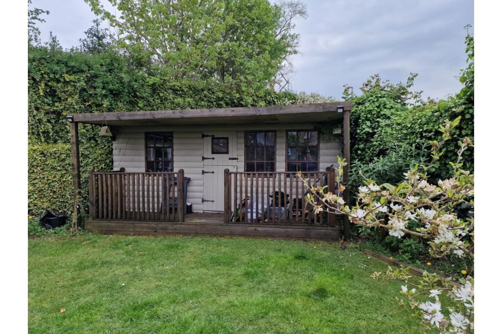The property includes a garden, which is a considerable asset. The garden appears to be of a good size, providing outdoor space for relaxation and entertaining. The presence of a shed adds further value.