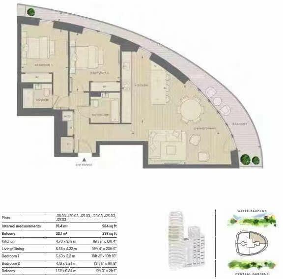2-bed, 2-bath apartment in Cassini tower, White City Living. Spacious SE-facing balcony with water garden views. Amenities: 24-hr concierge, gym, pool, private cinemas, and more. Steps from White City & Wood Lane Underground. Bond Street 12 mins, Paddington 8 mins away.