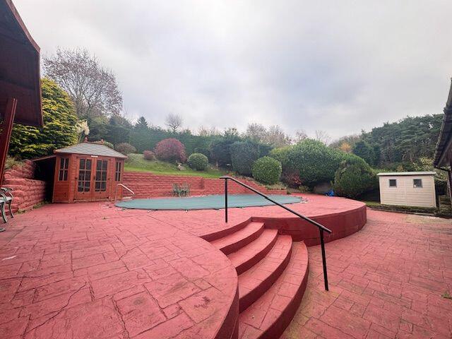 The property is located in Georgetown, Tredegar, which benefits from being relatively close to several primary and secondary schools and train stations. However, a definitive assessment of the location score is difficult without further information on local amenities and area desirability. Based on the images, the property appears dated and in need of modernisation and updating. The carpets are worn, the décor is dated, and the kitchen and bathrooms could benefit from refurbishment. The swimming pool is a unique feature but might require significant maintenance. The property includes a garden of reasonable size, enhanced by outbuildings. However, the exact land dimensions are unavailable. The list price is lower than the area average, but a precise comparison is impossible without square footage information. The lower price might be justified by the renovation needs, but more details are necessary for a conclusive assessment. Nearby property prices vary considerably, hindering a definitive value assessment.