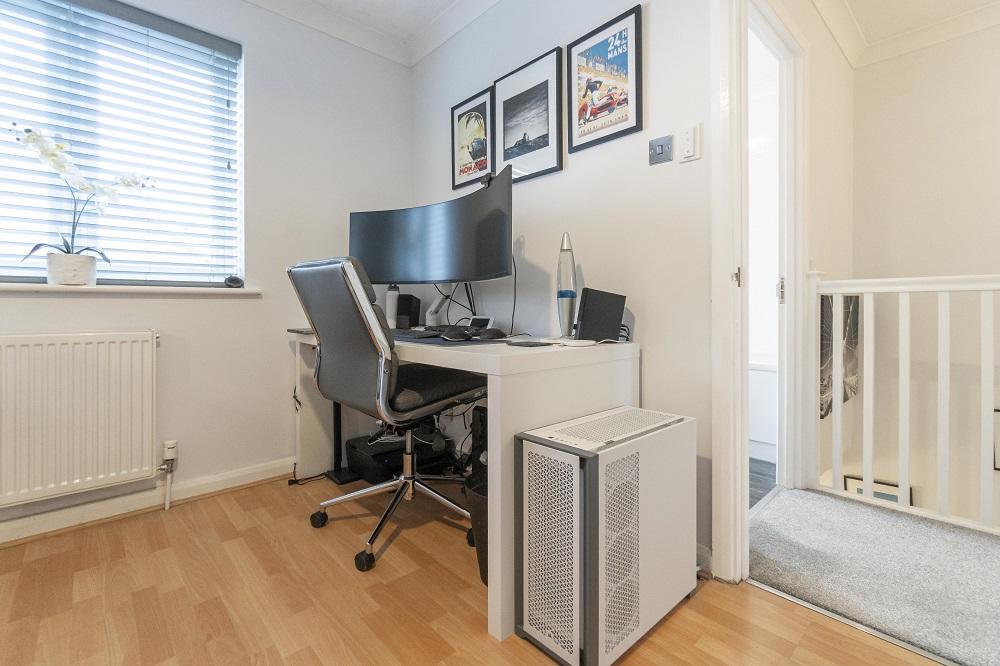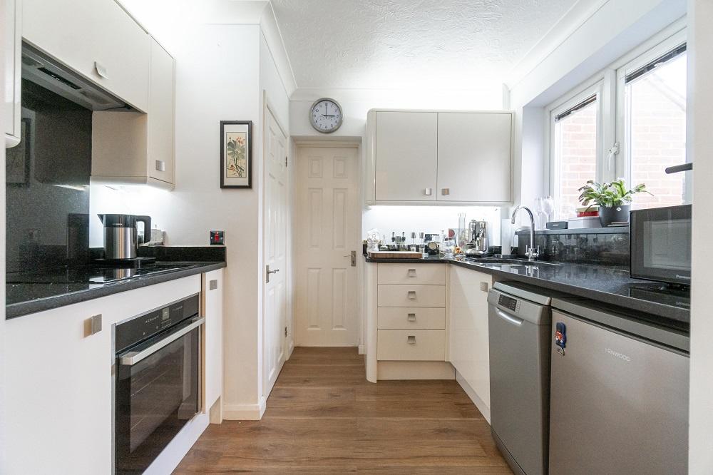 Tucked away in the corner of a quiet cul-de-sac within walking distance of the River Thames at Chertsey Meads this stylish detached house offers two double bedroomed accommodation with garage and parking.