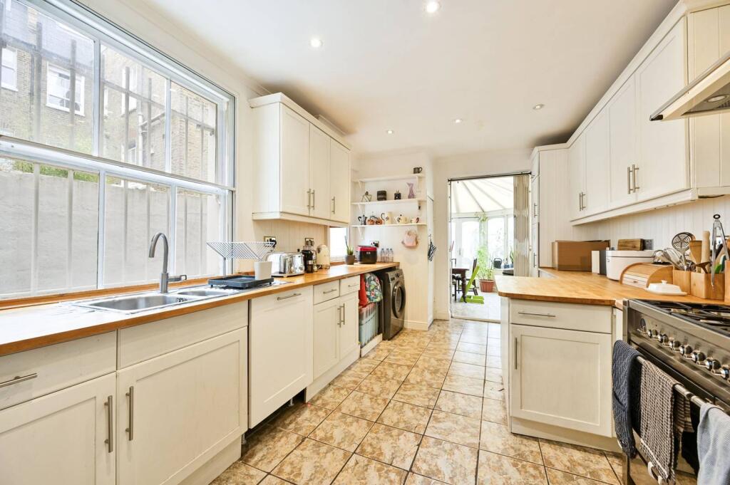 SHORT LET. Fantastic five bedroom three floor townhouse in Fulham featuring large well proportioned rooms throughout, a mixture of modern and cosy decor, ample storage, multiple bathrooms, conservatory and small patio.