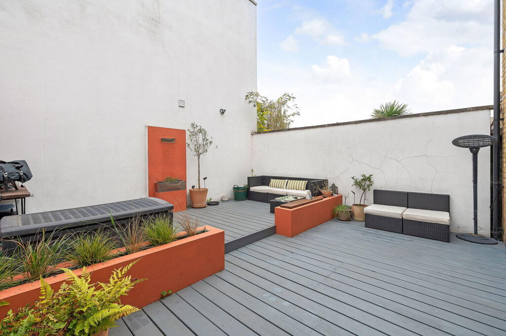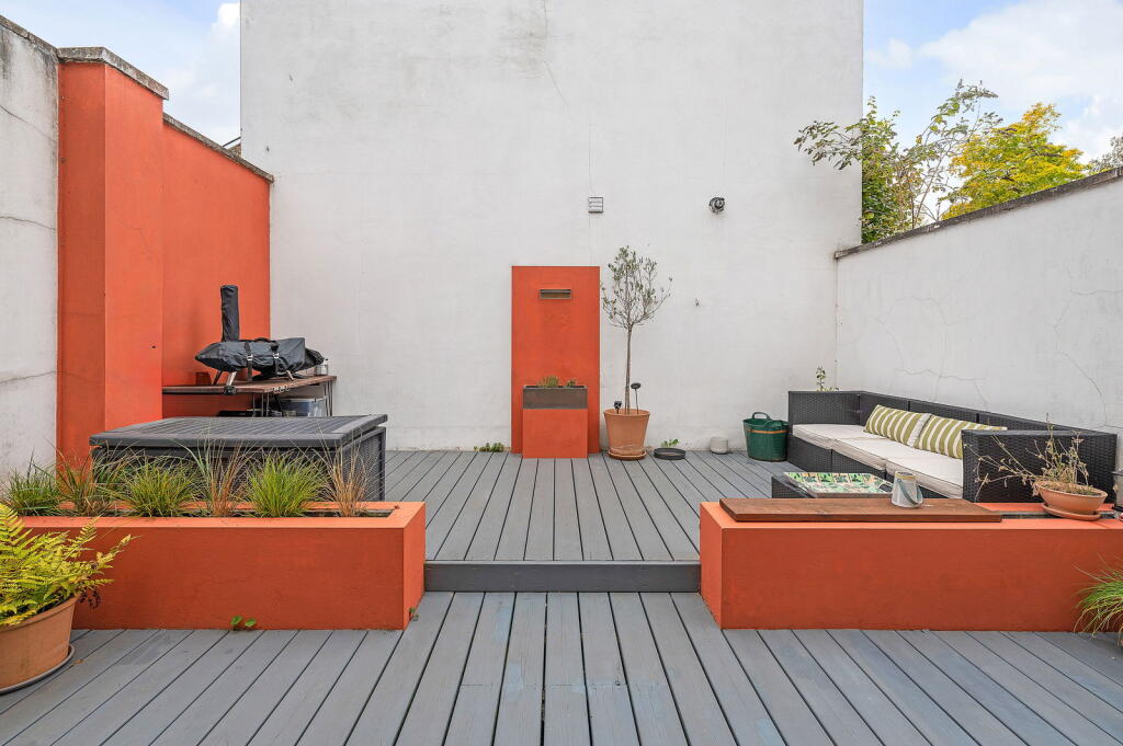 This is a well-presented two-bedroom flat in Brockley, London. The property benefits from a modern interior, a rear garden, and proximity to good schools and transport links. The kitchen and bathroom have been recently renovated. The property is competitively priced for the area, making it an attractive option for first-time buyers or investors. The decked garden provides a low-maintenance outdoor space, ideal for relaxing or entertaining.