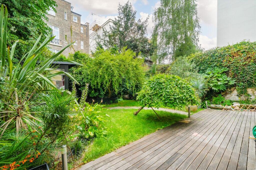 A spacious two double bedroom, two bathroom apartment with a large private garden. Measuring over 1,000 sq ft and with an open plan kitchen and reception room with room to dine, a garden room and scope to extend into a three bedroom (subject to usual consents).