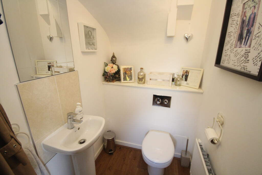 WELL PRESENTED, FREEHOLD, 3 BED MID-TERRACE HOUSE. uPVC double glazing, gas central heating (combi. boiler), downstairs WC, dining kitchen, en-suite shower room to master bedroom, garage (with electric car charging point) parking area & rear garden measuring approx. 39ft (11.89m).