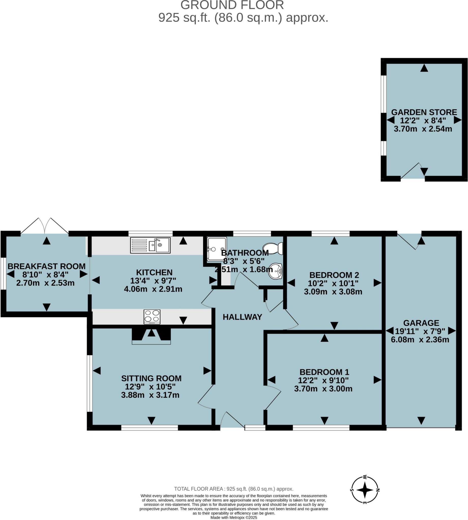 This is a two-bedroom bungalow located in South Molton, Devon. The property is in generally good condition, with a well-maintained garden, patio, and driveway. It also benefits from having a garage and shed. The property is located within walking distance of local schools, which have good Ofsted ratings. The interior of the property is in good order, however, some may consider it to be slightly dated. The property is listed for £335,000, which, given the location and size, seems reasonable.