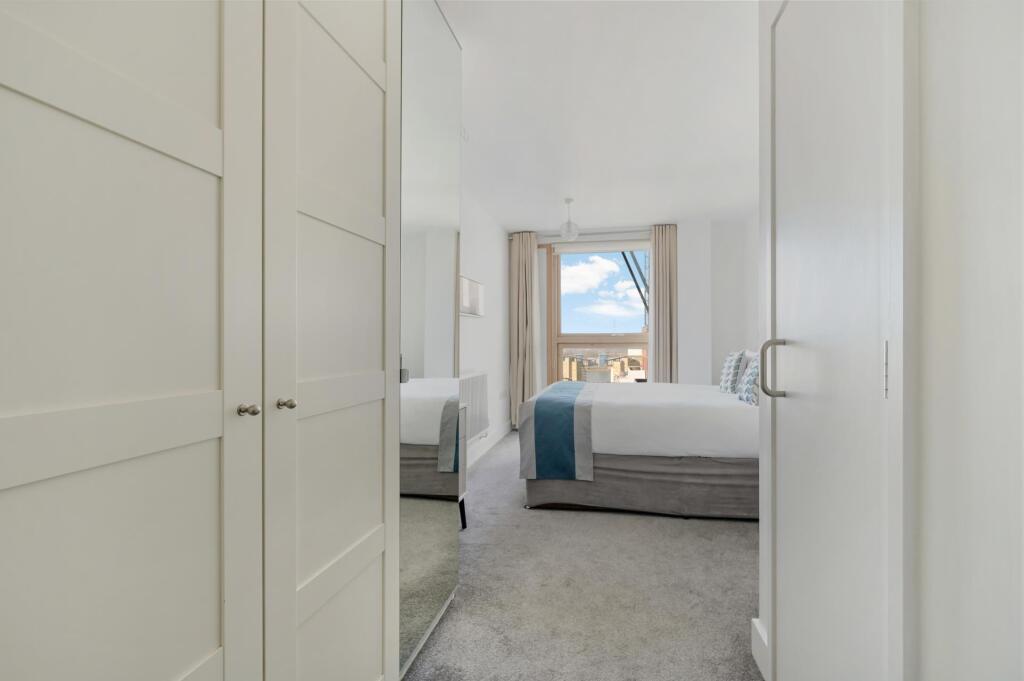 Views of The Shard and River Thames from this one bedroom apartment located on the 17th floor of Phoenix Heights, moments from Canary Wharf.