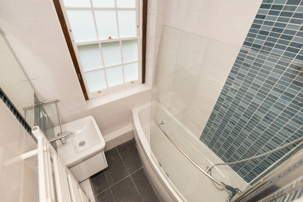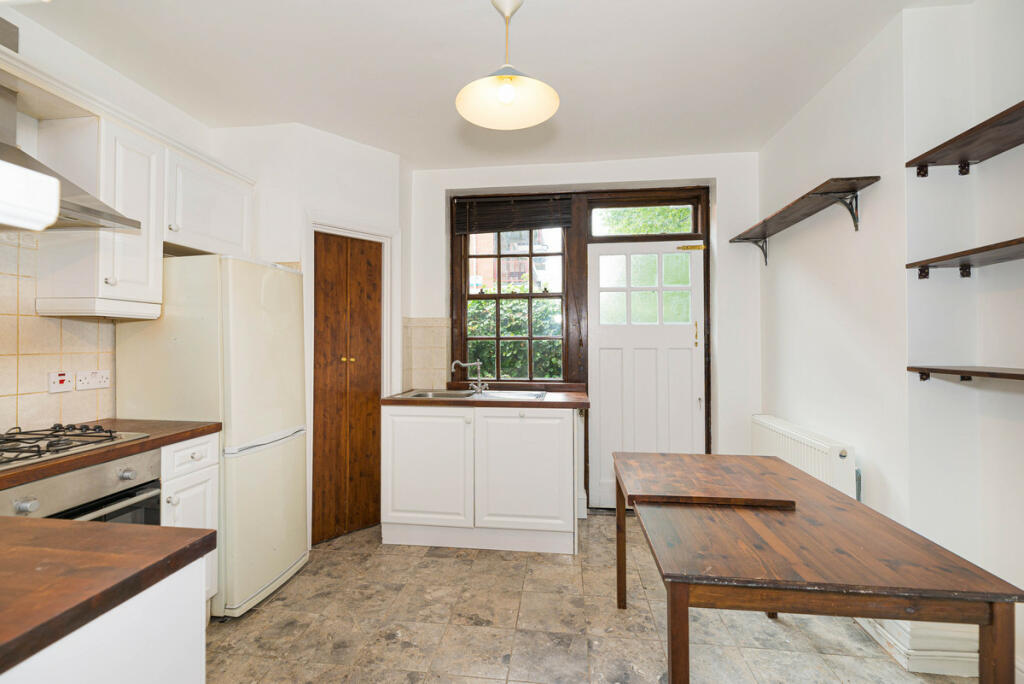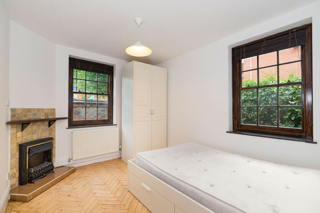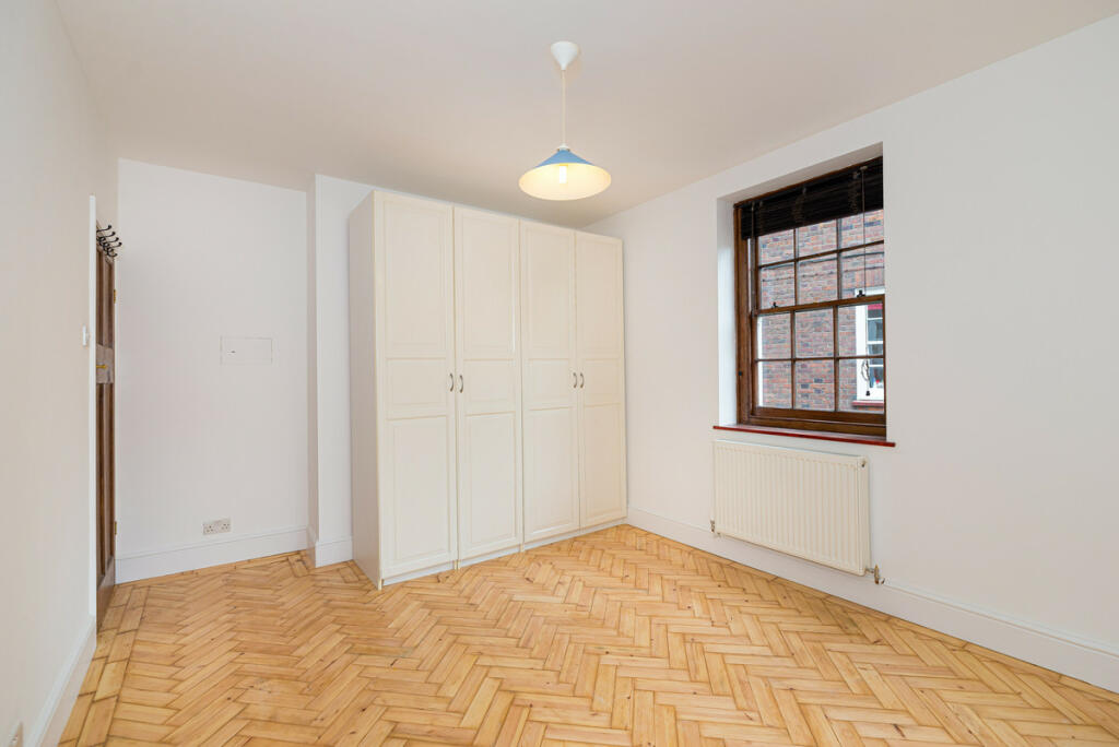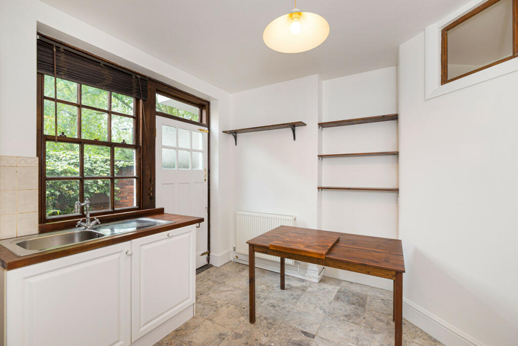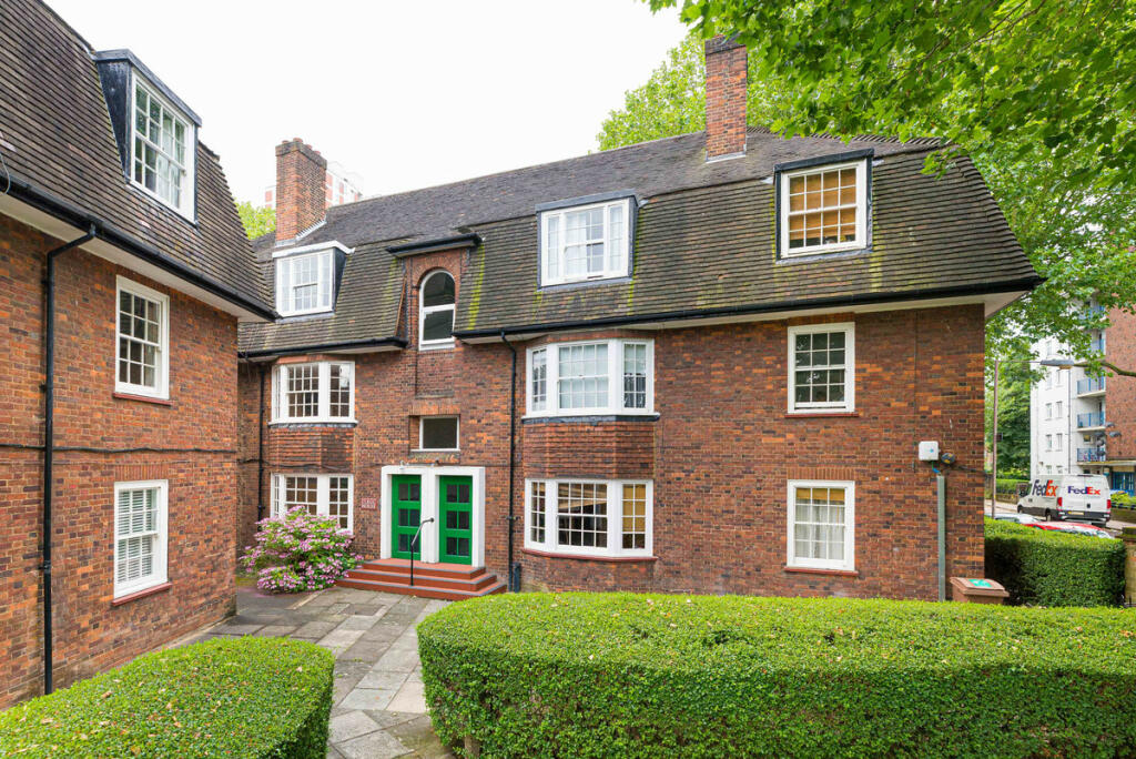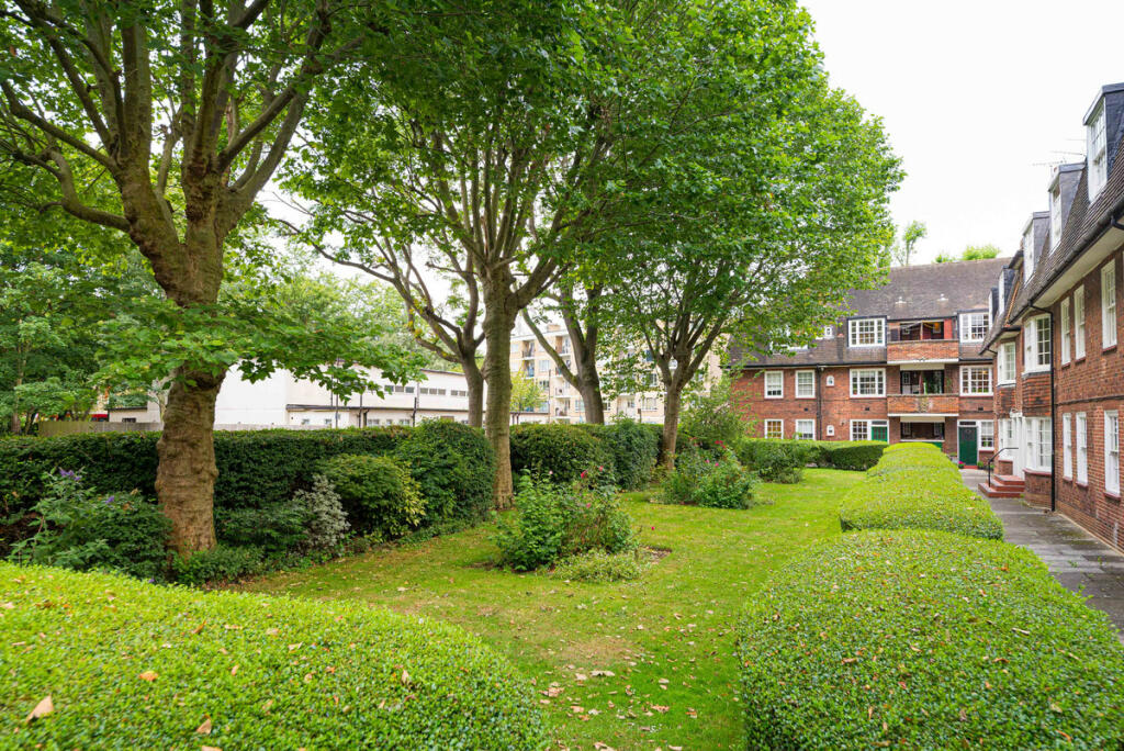A three-bedroom flat for sale in a private red brick block built in 1929 by Metropolitan Gas Workers has a huge living room, two bathrooms, and an open-plan living kitchen with independent access to the courtyard