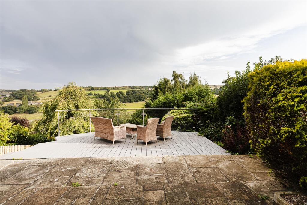 A well-maintained end-of-terrace property in Holmfirth, West Yorkshire. It features a modern kitchen and bathrooms, and benefits from a garden with a raised decking area offering pleasant outdoor space and views. Close to schools and transport links.