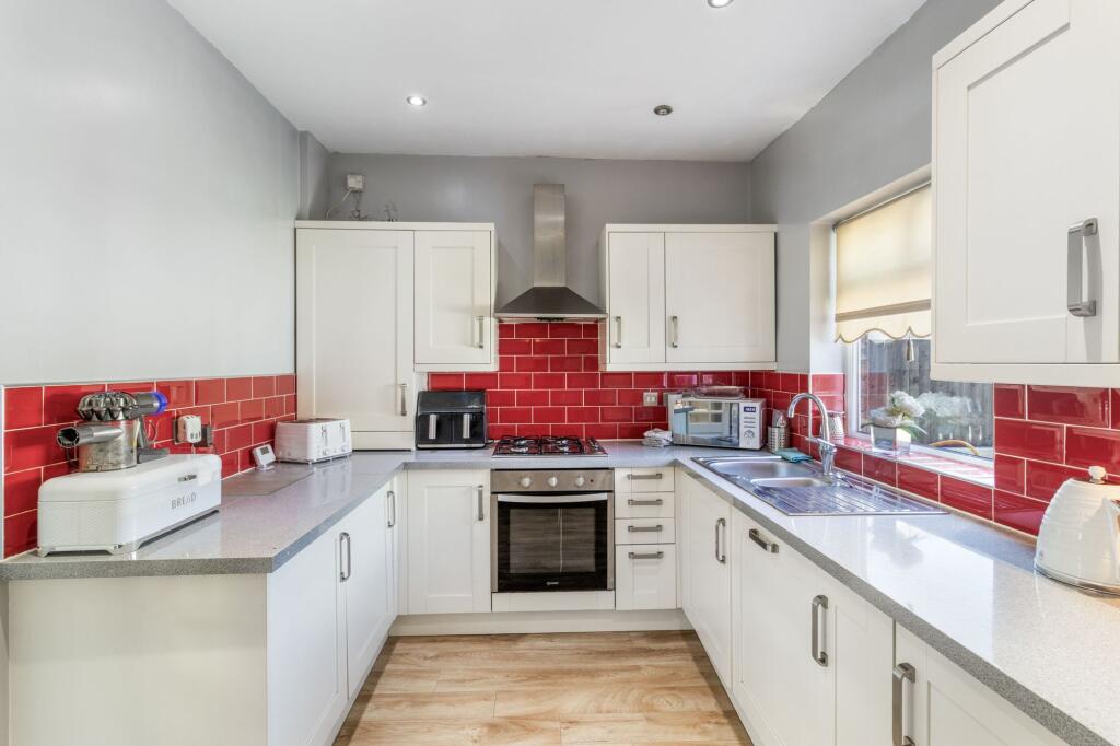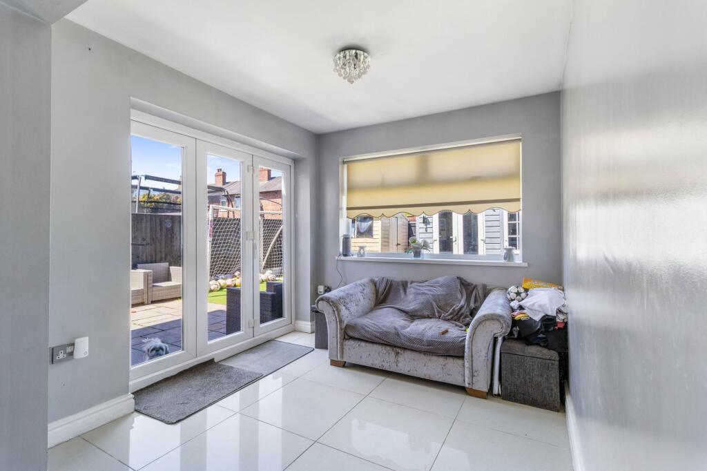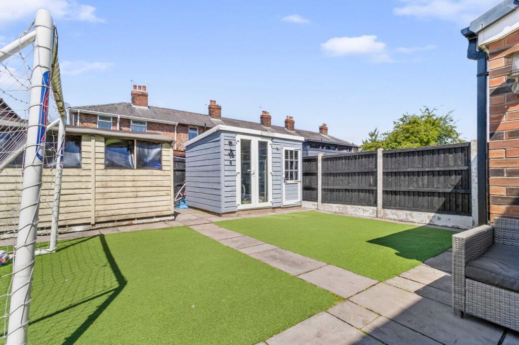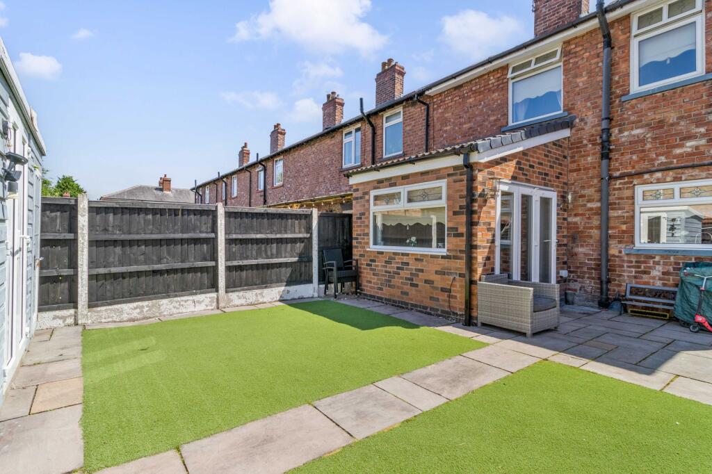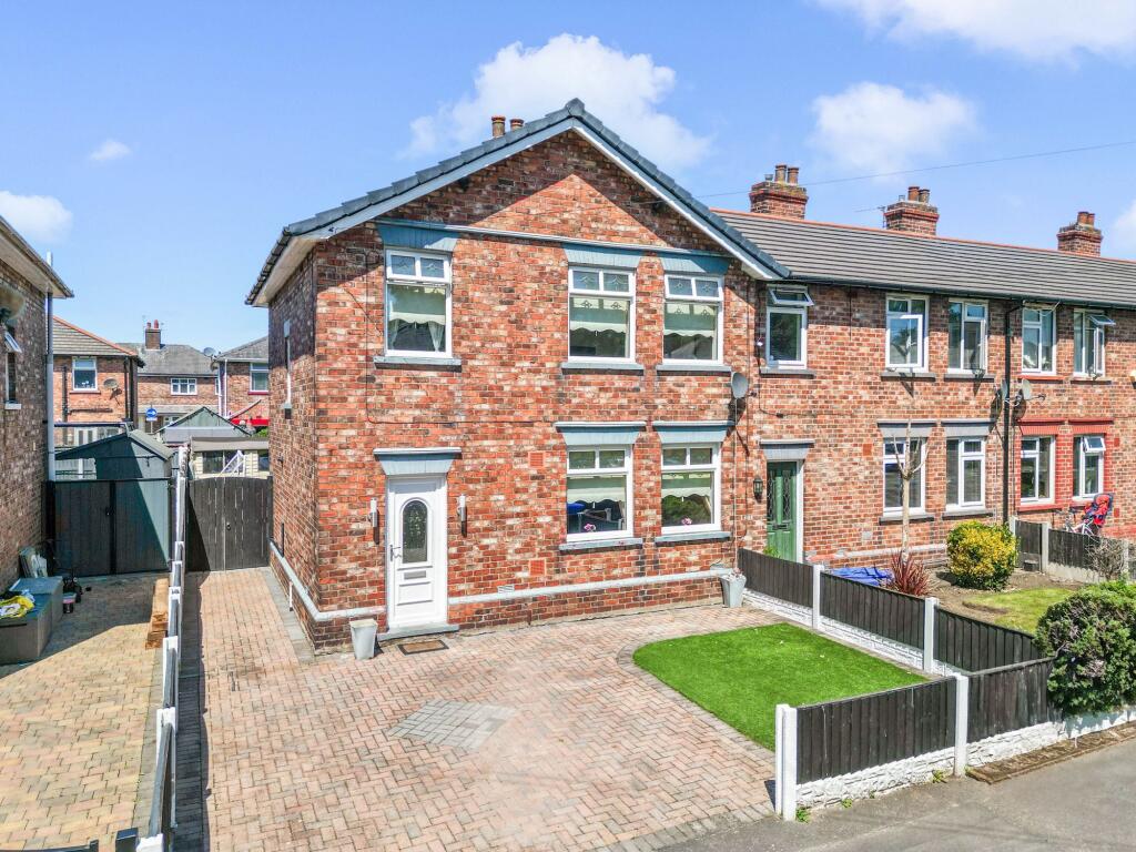 A stylish three-bed end-terrace in Latchford with extended living space, modern kitchen, garden bar, off-road parking, and freehold title—perfect for family living and entertaining.