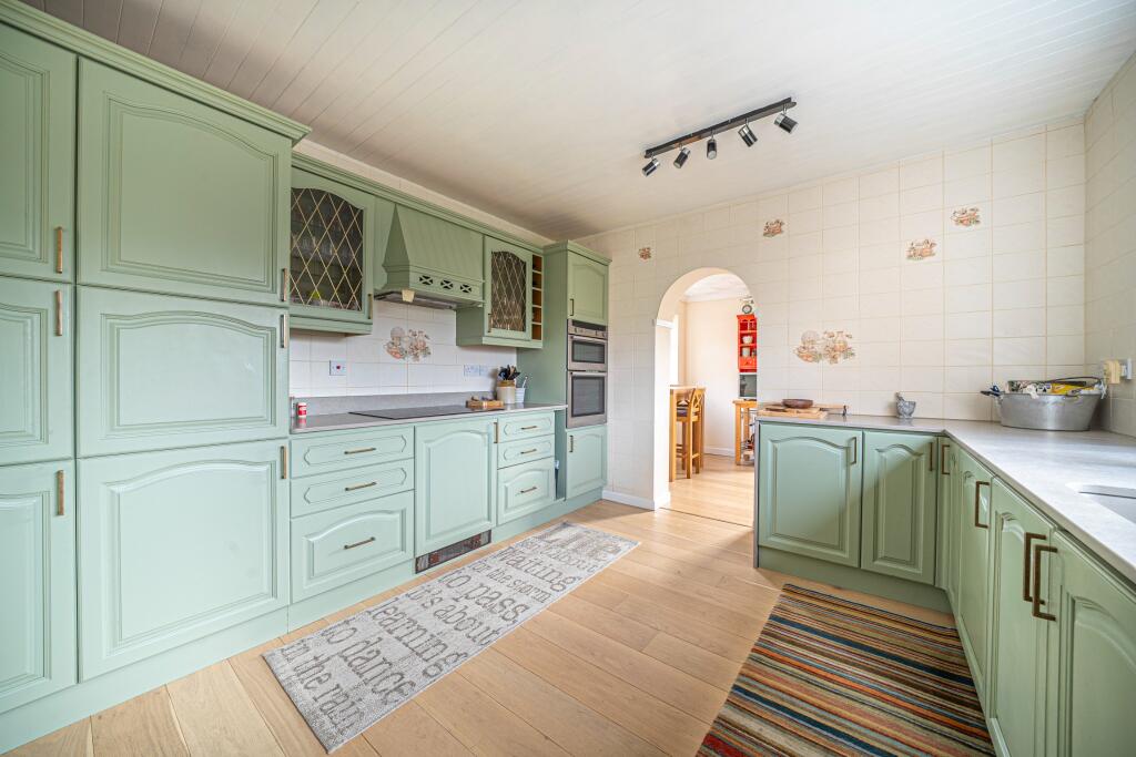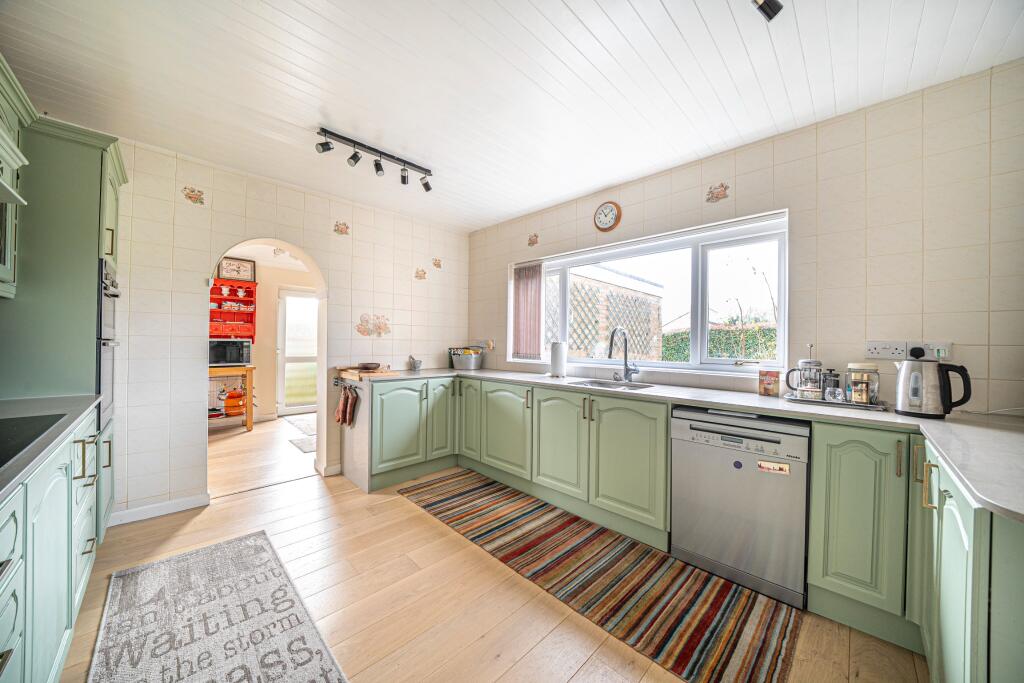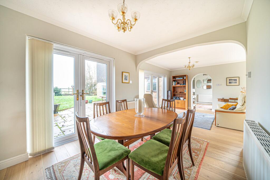 This three-bedroom detached bungalow in Thruxton, Hampshire, presents a charming blend of rural tranquility and convenient access to local amenities. Situated on Stanbury Close, a quiet cul-de-sac, the property benefits from a peaceful setting with views over fields. The interior features a spacious open-plan living area with a distinct dining section, recently updated kitchen, three bedrooms and two bathrooms. A significant advantage is its proximity to well-regarded primary schools such as Kimpton, Thruxton And Fyfield Church Of England Primary School, which is within walking distance. The garden, while not exceptionally large, provides a private outdoor space with a patio for al fresco dining and a shed for additional storage. While the property shows its age in some areas, notably the older bathroom, it benefits from a generally well-maintained interior and a welcoming atmosphere. The asking price seems consistent with the pricing of comparable properties in the area, making it reasonably priced, although additional research would confirm the price per sqft accuracy. Overall, this property is well-suited to families seeking a peaceful rural lifestyle within easy reach of local schooling and Andover.