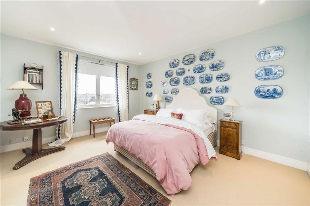 A beautiful split level penthouse with some of the best views of The Thames in London, from the impressive principal living room with curved panoramic window to the balconies and roof terrace.