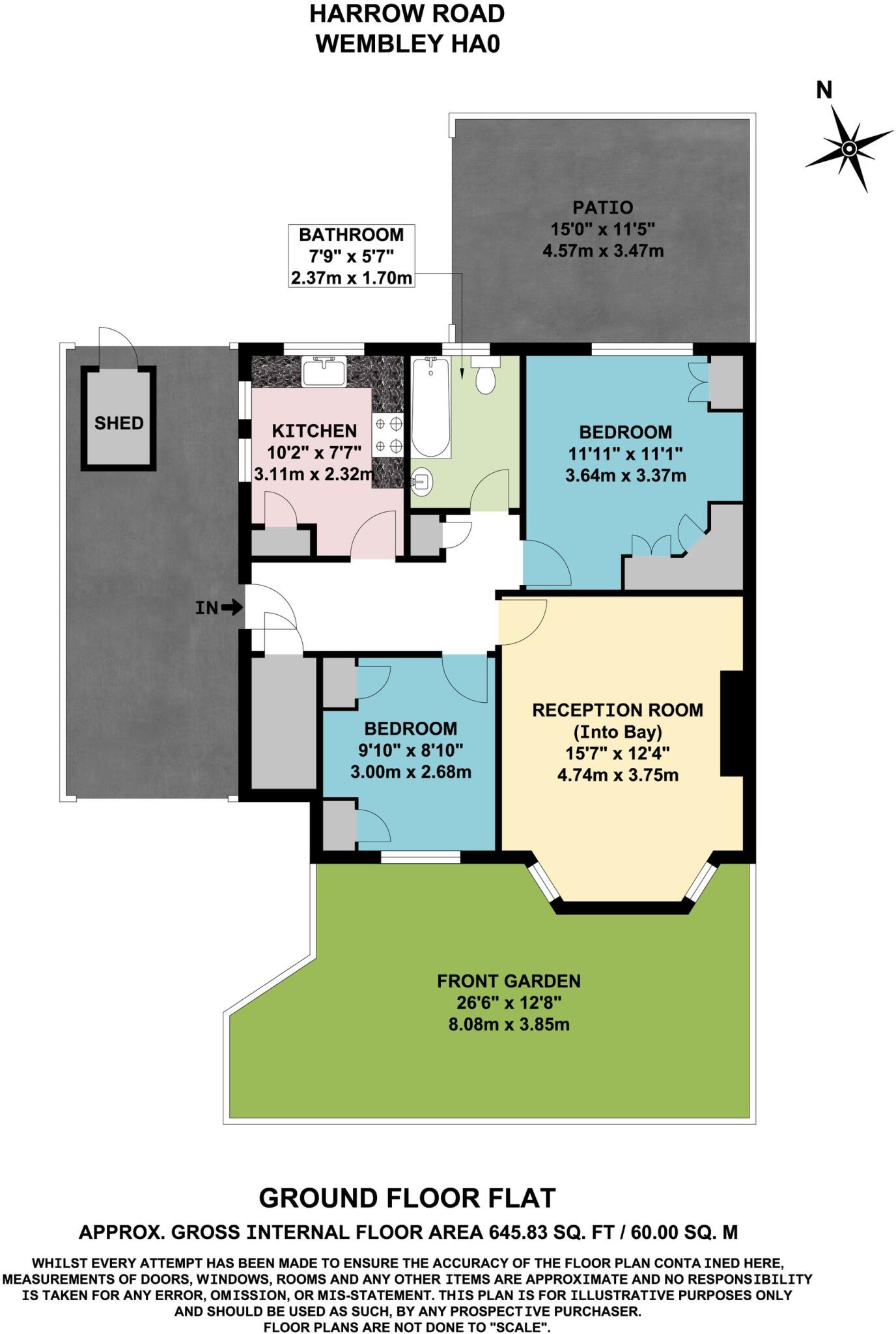 Ground floor 2-bed maisonette with front garden & rear patio. Spacious rooms, fitted kitchen, family bathroom, storage, & private shed. Ideal for first-time buyers or investors. Convenient location near schools & transport links. Book a viewing now!