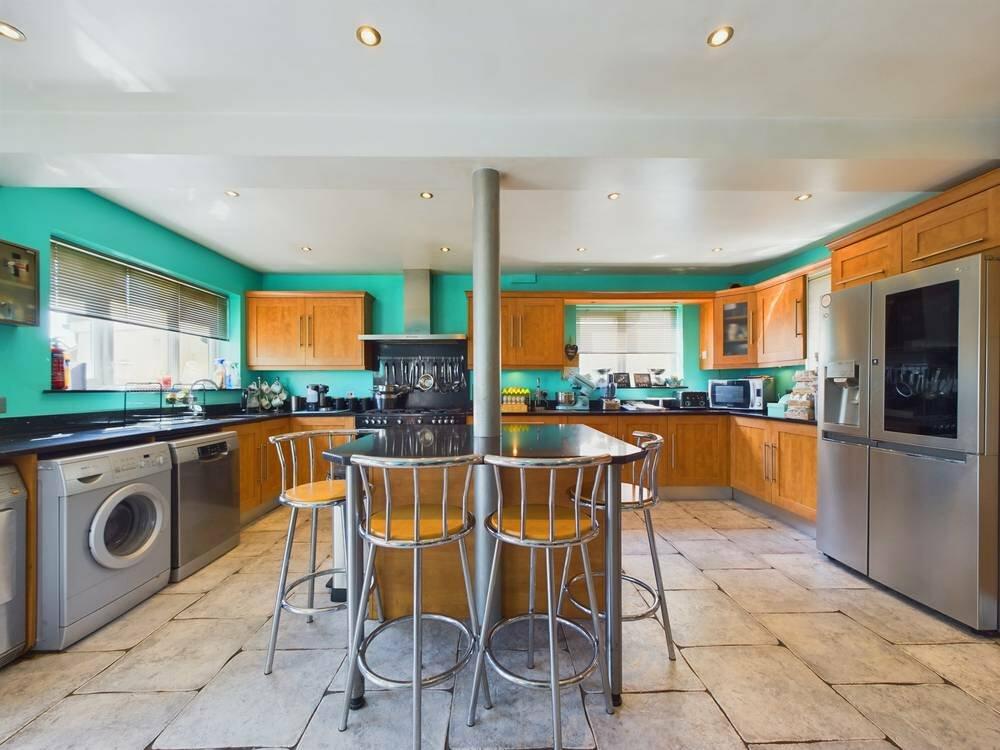 We are delighted to present this substantial five double bedroom house, featuring a spacious south facing rear garden. This impressive home boasts an 18ft kitchen/breakfast room, a lounge/diner with a charming open fireplace, an additional reception room/study, conservatory, utility room, bath...