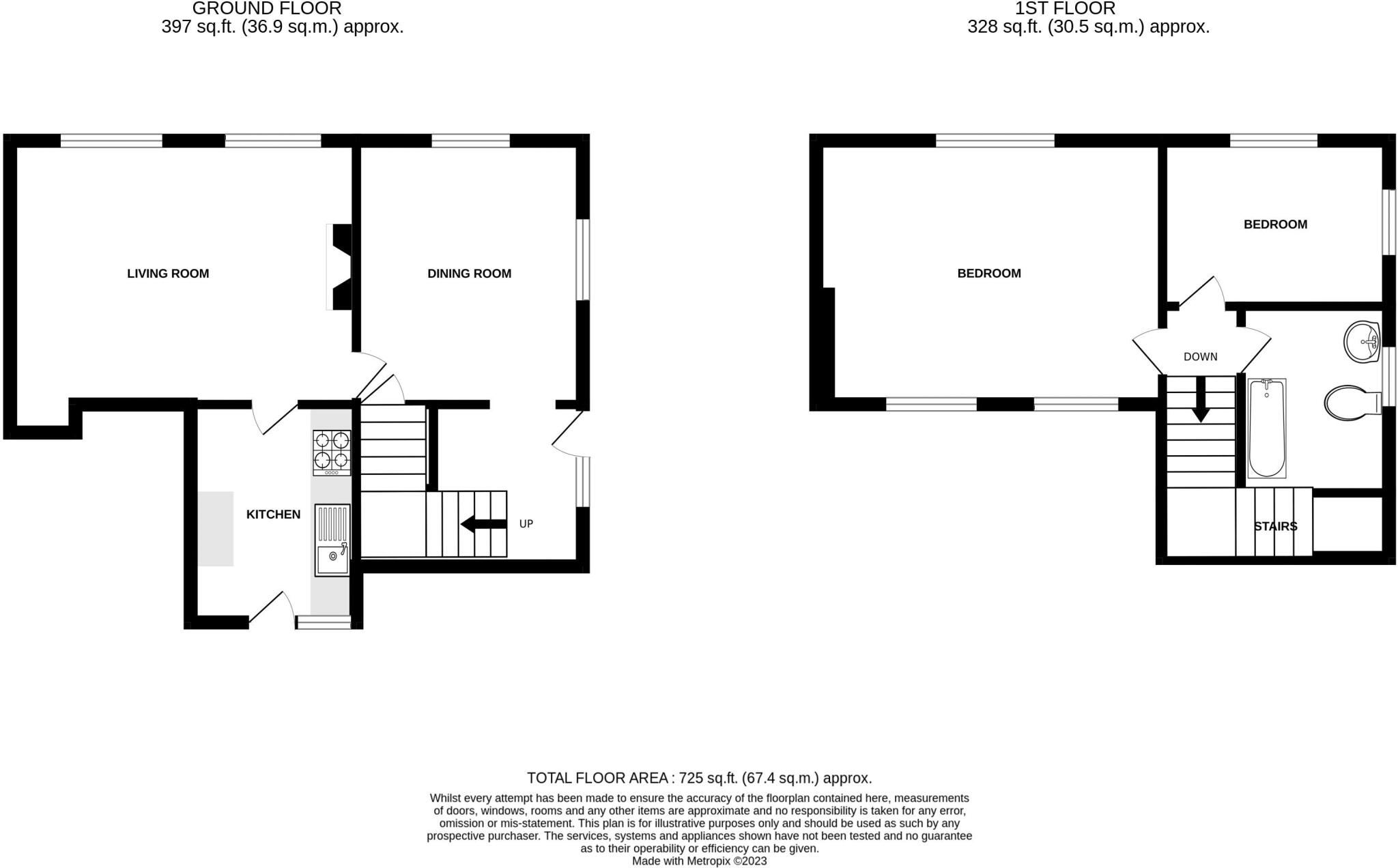 This is a semi-detached property located on Old Market Street in Usk, Monmouthshire. It features two bedrooms and one bathroom, with a total square footage of 725. The property is listed for £190,000, which is below the average price for the area. The interior appears to be in good condition, with a modern kitchen and living area. The bathroom could use some updating. The property has a small outdoor area, but it is mostly paved. The property is located within walking distance of local amenities and Usk C.V. Primary School. Overall, this property seems like a good value for the asking price.