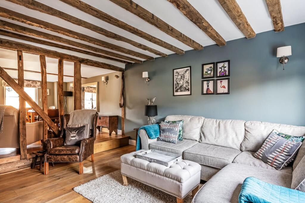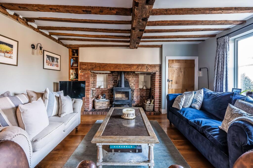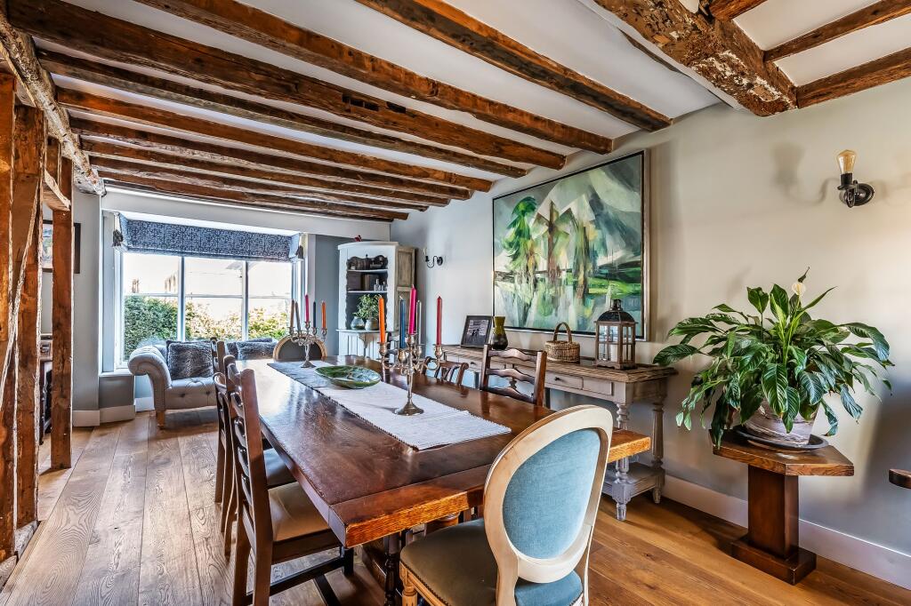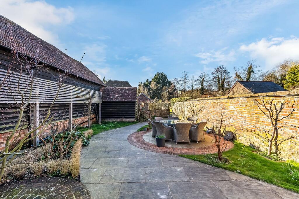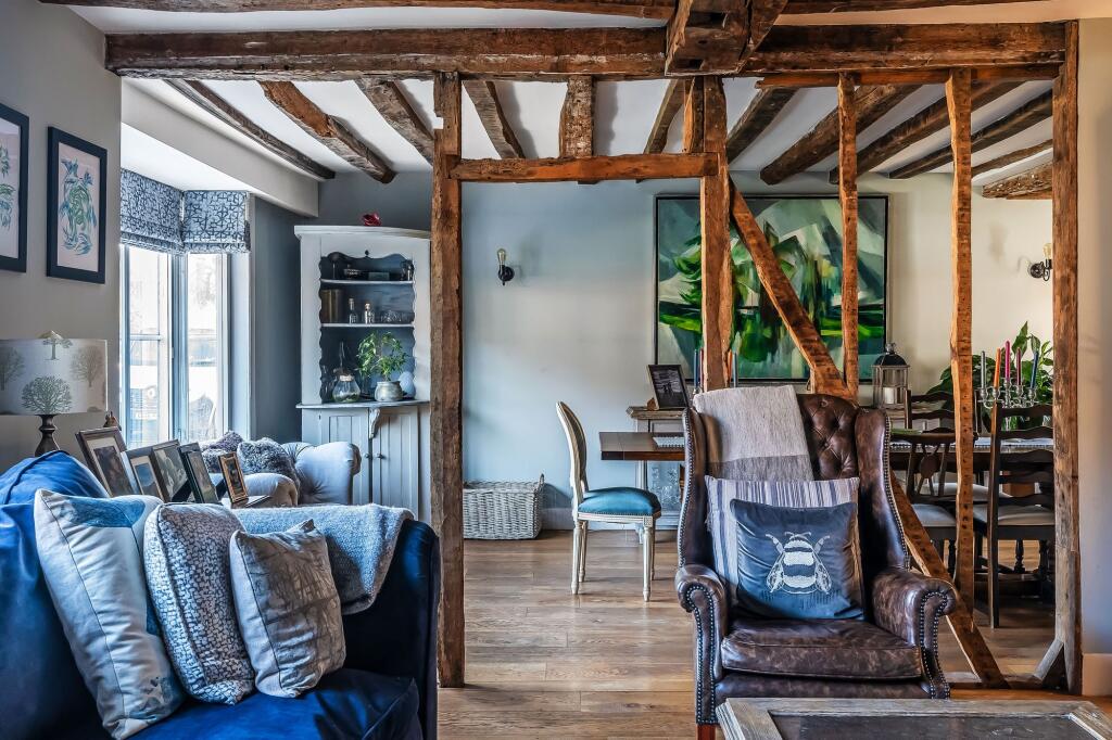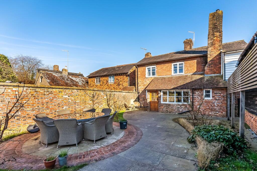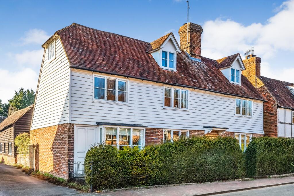 Stunning Grade II listed 5/7 bed period home in Lamberhurst village. Original features, Tom Howley bespoke kitchen, expansive gardens, secure parking. Total Plot 0.34 of an acre.