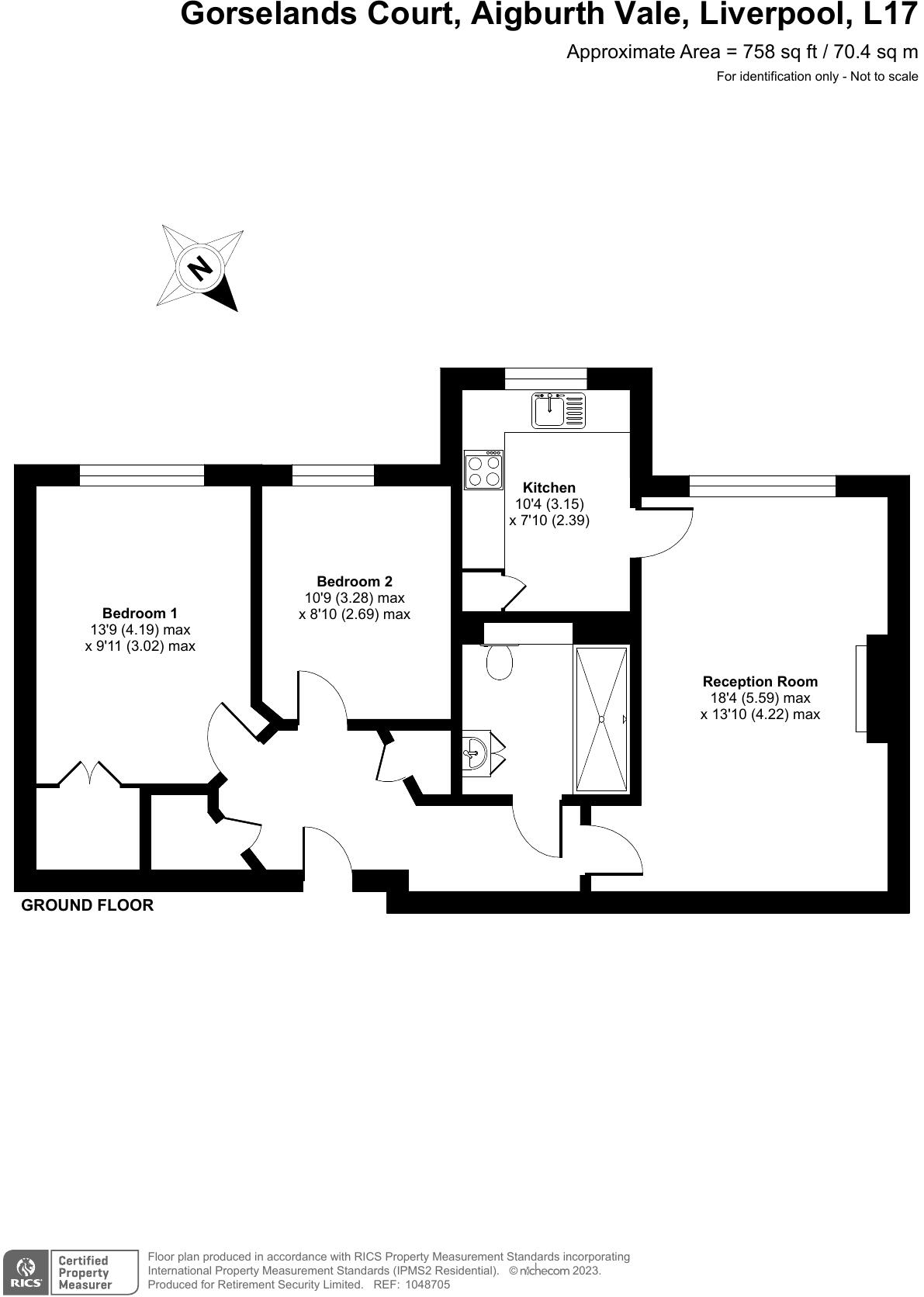 A ground floor, newly redecorated and recarpeted, two bedroom retirement property set within Retirement Security's Gorselands Court, a development for the over 65's
