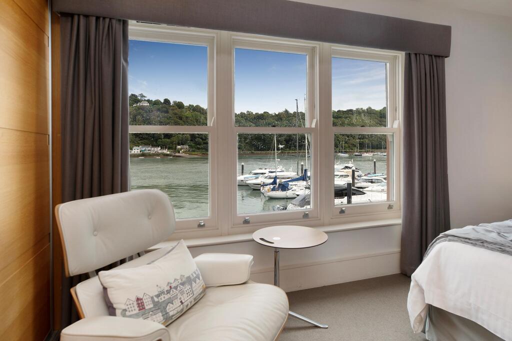 A stunning three storey town house with waterside terrace, parking, and superb uninterrupted views of the River Dart. 28 Dart Marina is a beautifully presented three-storey town house with a private riverside terrace and wonderful views over the Dart Marina and River Dart beyond. This luxuriousl...