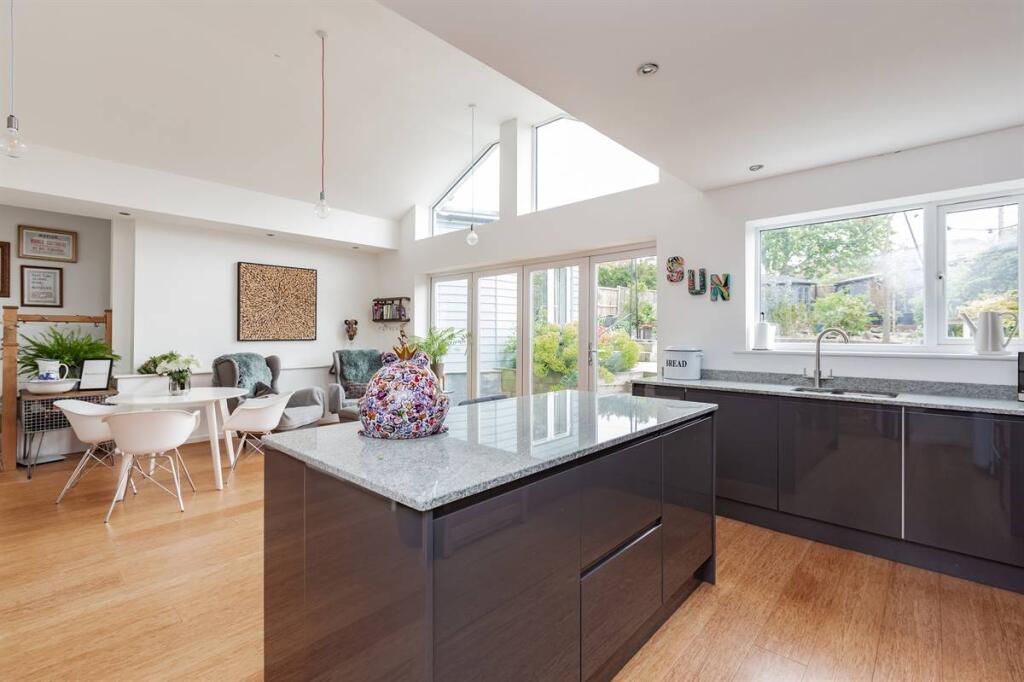 Based on the provided images, the property appears to be in excellent condition. It has undergone a significant and high-quality renovation or extension, resulting in a modern, open-plan living space with a contemporary kitchen and bathrooms. The finishes and fixtures look new and well-maintained. The garden is also well-maintained and landscaped.
