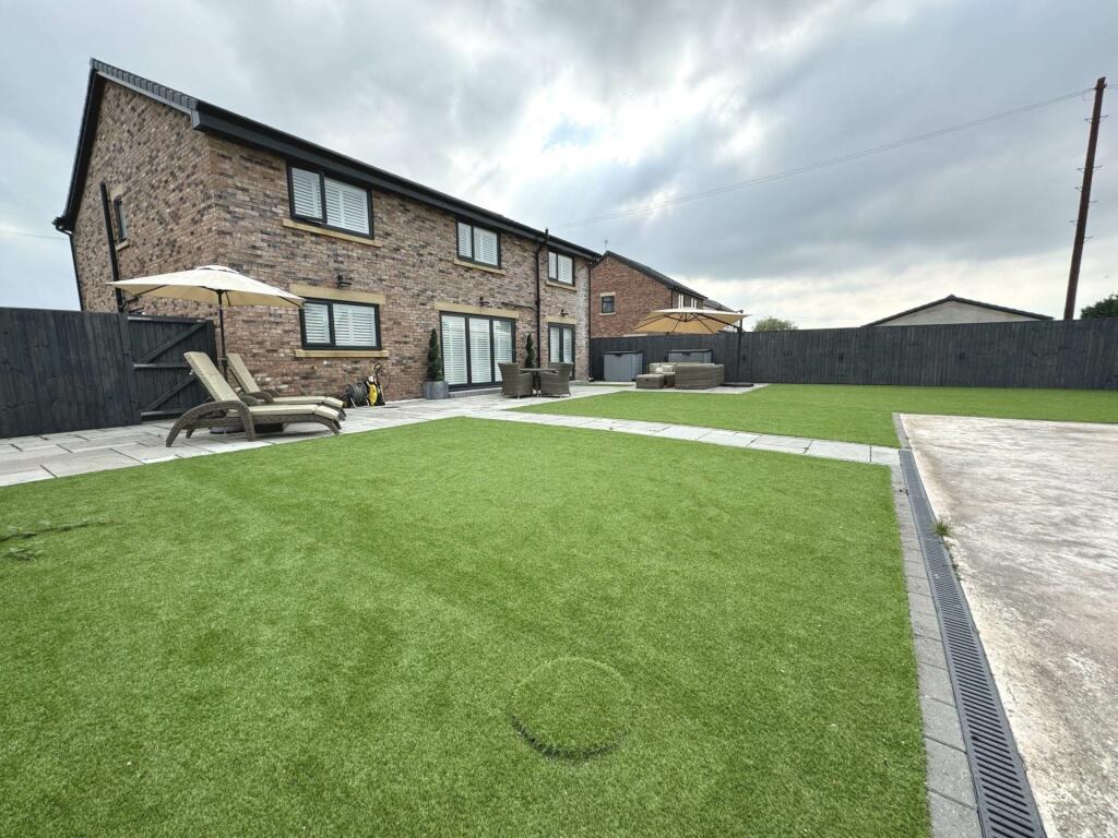 This four-bedroom, five-bathroom detached house in Blackpool is a modern, luxuriously appointed property. The interior showcases high-end finishes, a spacious layout, and thoughtful design features such as a fully-fitted kitchen, a bar/snug area, and multiple en-suite bathrooms. The images reveal a contemporary aesthetic, with modern appliances and fixtures. The large artificial lawn garden and patio area make it ideal for family living and outdoor entertainment. The property also benefits from a driveway offering ample parking. While the property’s quality and design are evident, a lack of detailed plot-size information makes it challenging to determine the true value-for-money proposition. The location offers a balance between semi-rural tranquility and easy access to transport links and schools, making it particularly suitable for families. Further comparative data regarding nearby property sales and price per sqft data would improve the assessment of this property’s value and competitiveness in the market.