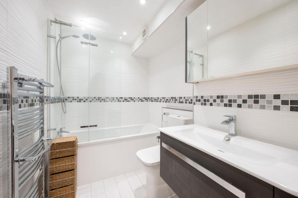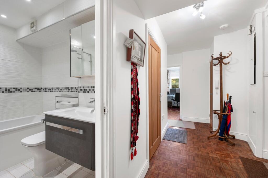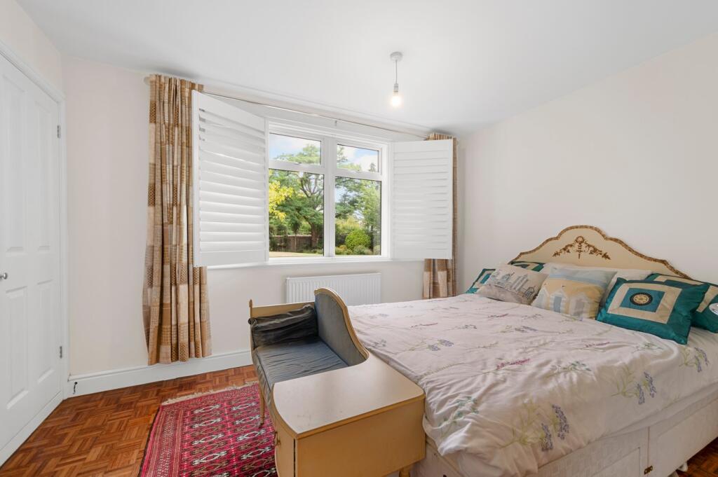 This is a three-bedroom flat in Chilton Court, Walton-on-Thames. The property is in a good location, close to transportation and schools. The condition of the property appears to be good, with modern fixtures and fittings. The property benefits from communal gardens. The price seems reasonable compared to other properties in the area.