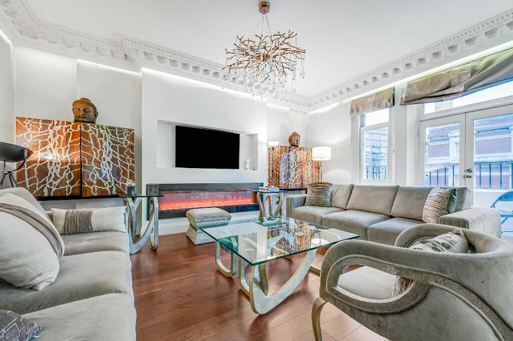 Elegant three-bedroom apartment on the third floor of a period building with a lift. Features include wooden floors, bespoke marble bathrooms, and a private balcony. Just steps from Hyde Park and Gloucester Road. Filled with natural light and benefits from a long lease.