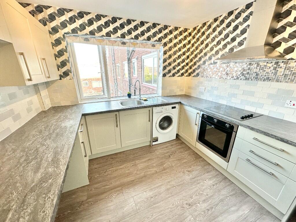 This is a two-bedroom apartment in Sale, Greater Manchester. The property is in reasonable condition and has a modern kitchen and bathroom. The property has access to communal gardens. The property is located close to schools and local amenities. The property is listed at £185,000, which is below the average price for the area. The apartment is situated in a block of apartments called Windsor Court.