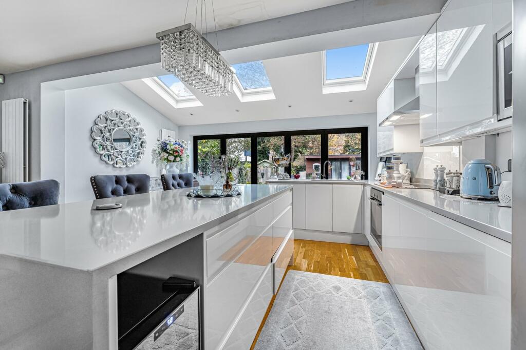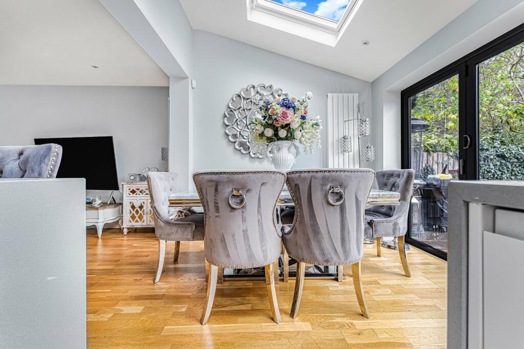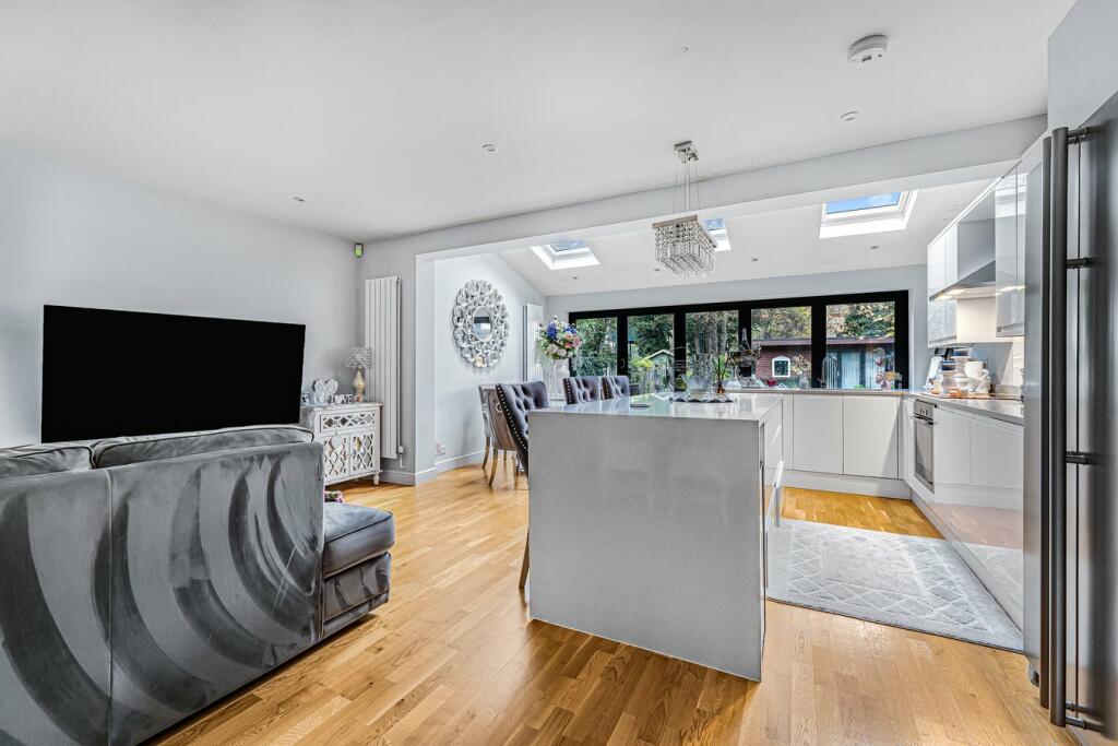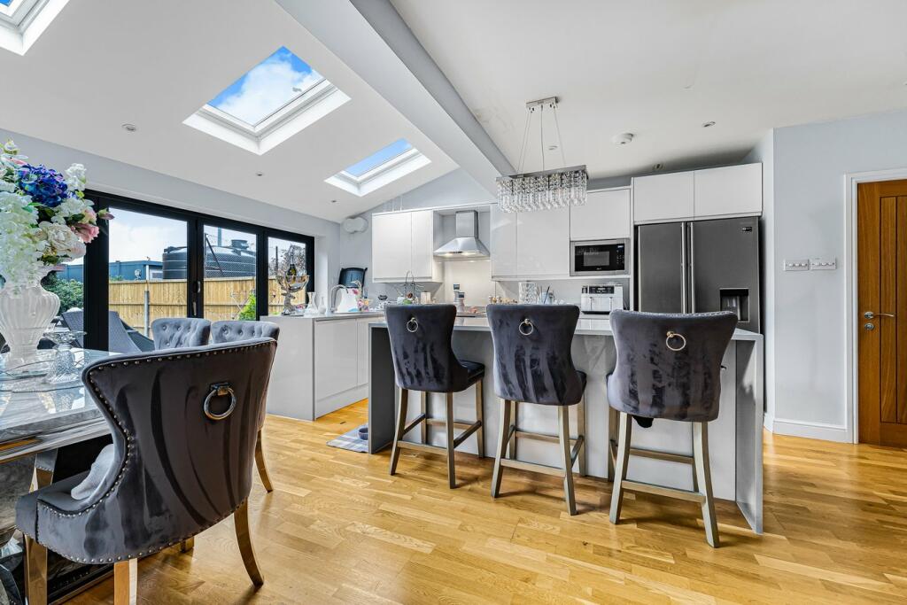 This 4-bedroom, 1-bathroom semi-detached house in Staines-upon-Thames, Surrey, is presented in excellent condition following recent renovations. The modern kitchen extension is a highlight, featuring high-quality appliances and a spacious, open-plan design that seamlessly flows into a dining area and living space. Natural light floods the property thanks to strategically placed skylights, enhancing the bright and airy feel. The main living space is spacious and well-lit, offering comfortable living accommodation. The bedrooms also appear well-maintained, with ample room. The property boasts a sizeable garden, complete with a patio area ideal for outdoor entertaining. The property’s location is convenient, close to the River Thames and Staines town center, with good access to public transport and local schools. Nearby train stations provide good links to London. Although the property information does not include plot size or detailed square footage data for comparable properties, the asking price of £650,000 seems relatively consistent with the market in the area and seems a fair price for this well-maintained home.