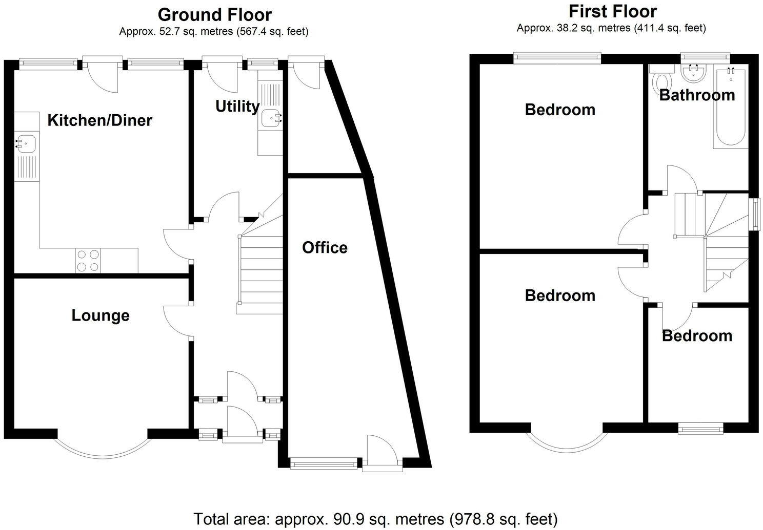 + + + MOST ATTRACTIVELY PRESENTED THREE BEDROOM SEMI-DETACHED HOUSE WITH ADDED "BONUS" OF SEPARATE OFFICE / WORKSHOP AT SIDE & RE-FITTED FIRST FLOOR BATHROOM IN 2025 & GENEROUS DRIVEWAY PARKING + + + Also With First Floor Bathroom & Spacious Dining Kitchen & Utility Room ...