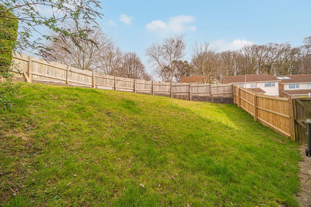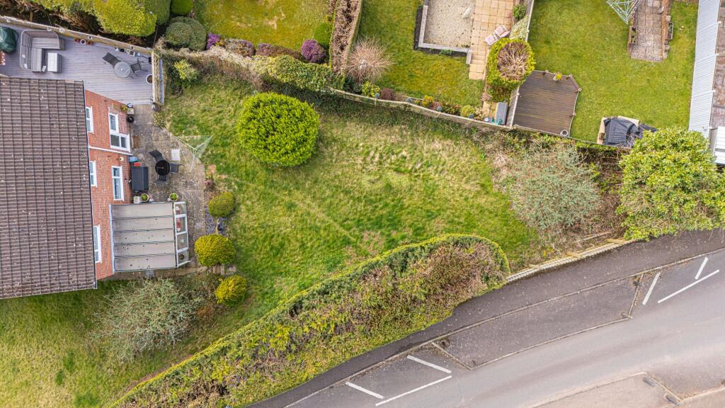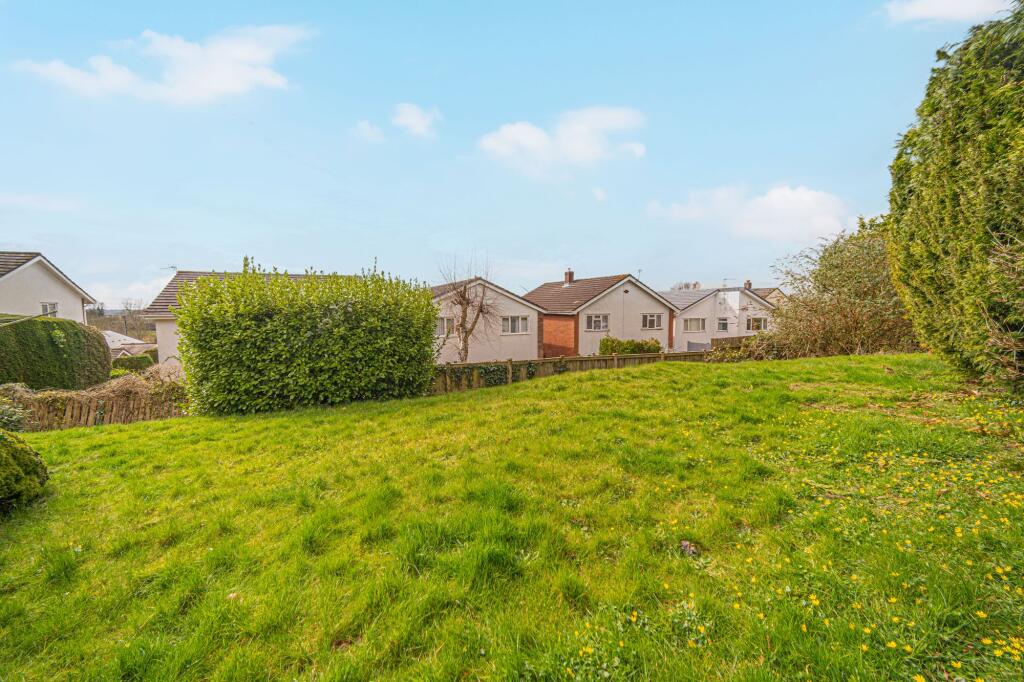 The property includes a substantial garden area, offering ample space for outdoor activities and relaxation. The garden is tiered, providing a variety of spaces, including a patio area, lawn, and a decked area. There is also a garden shed.