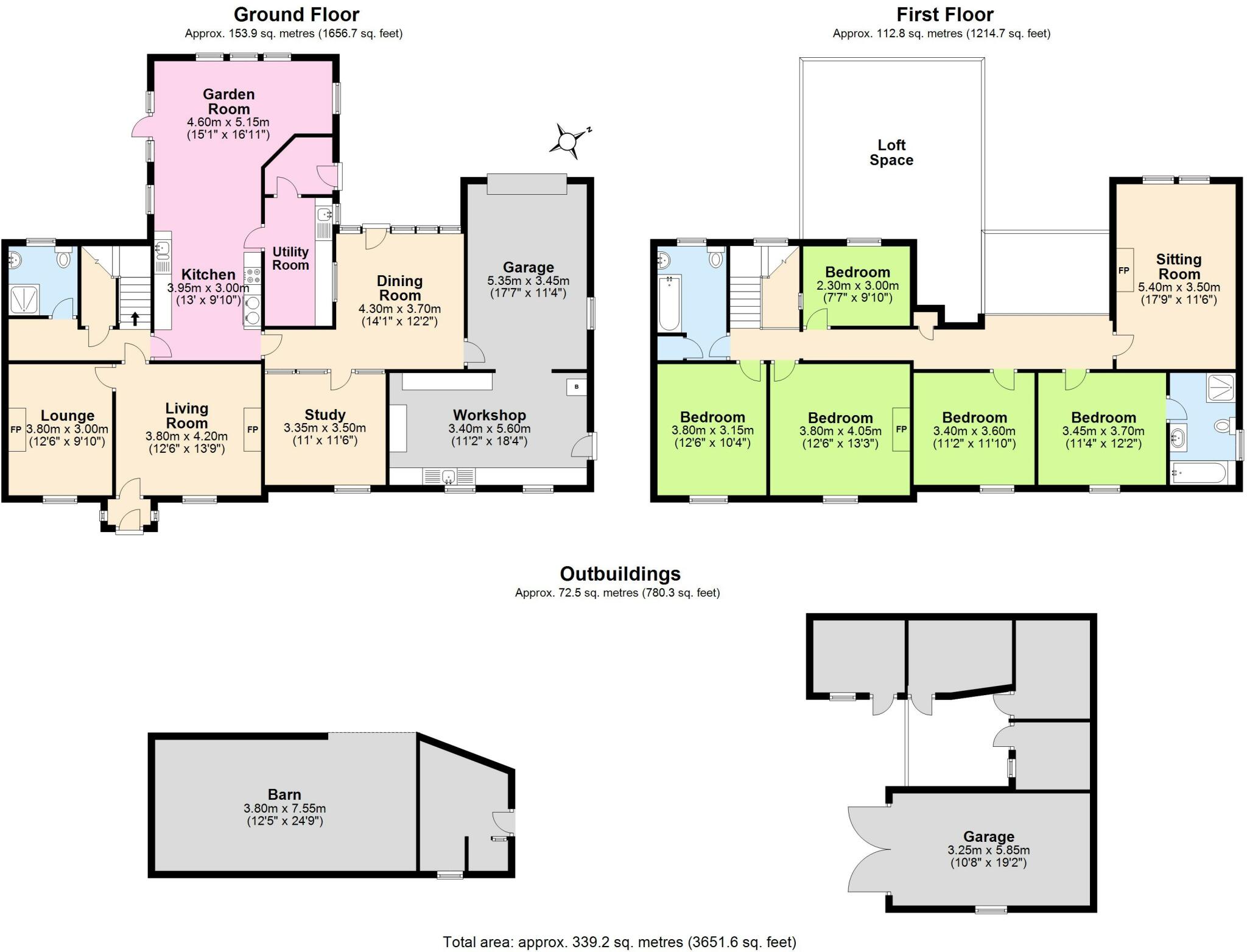 Impressive detached home with the benefit of an almost 3 acre paddock. Five beds, one en-suite. Range of outbuildings.