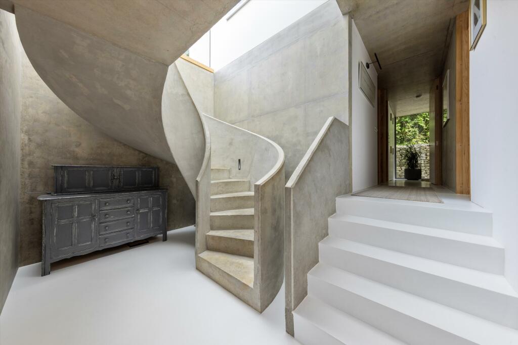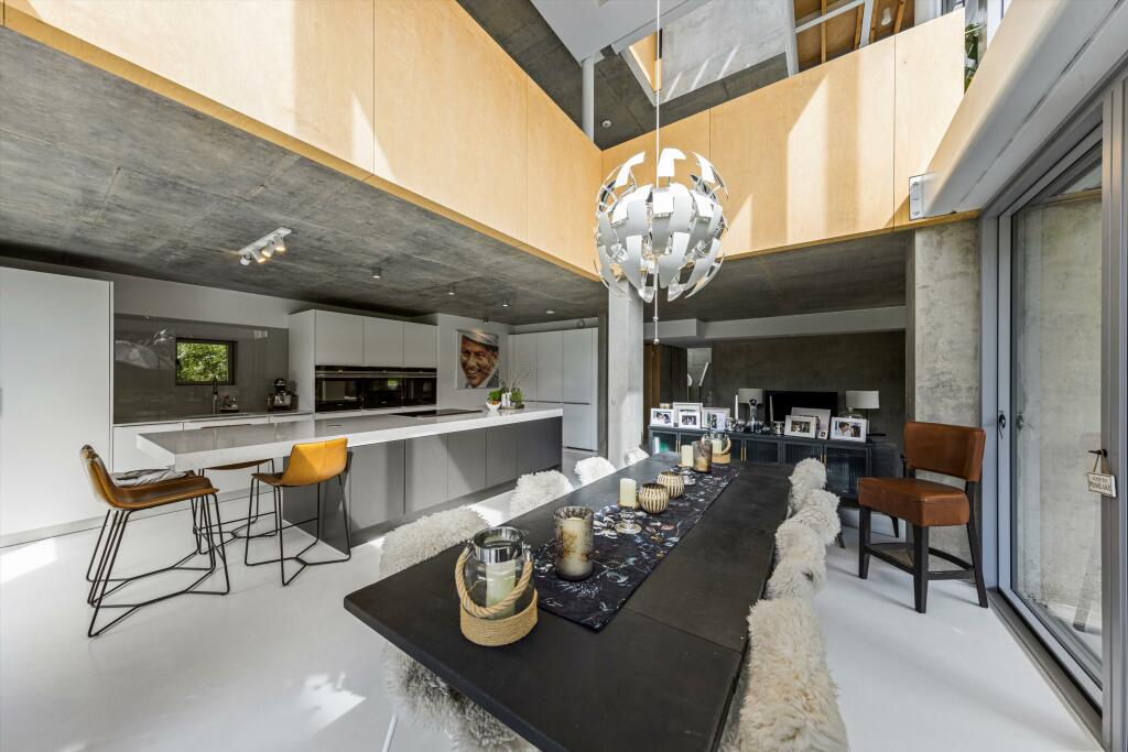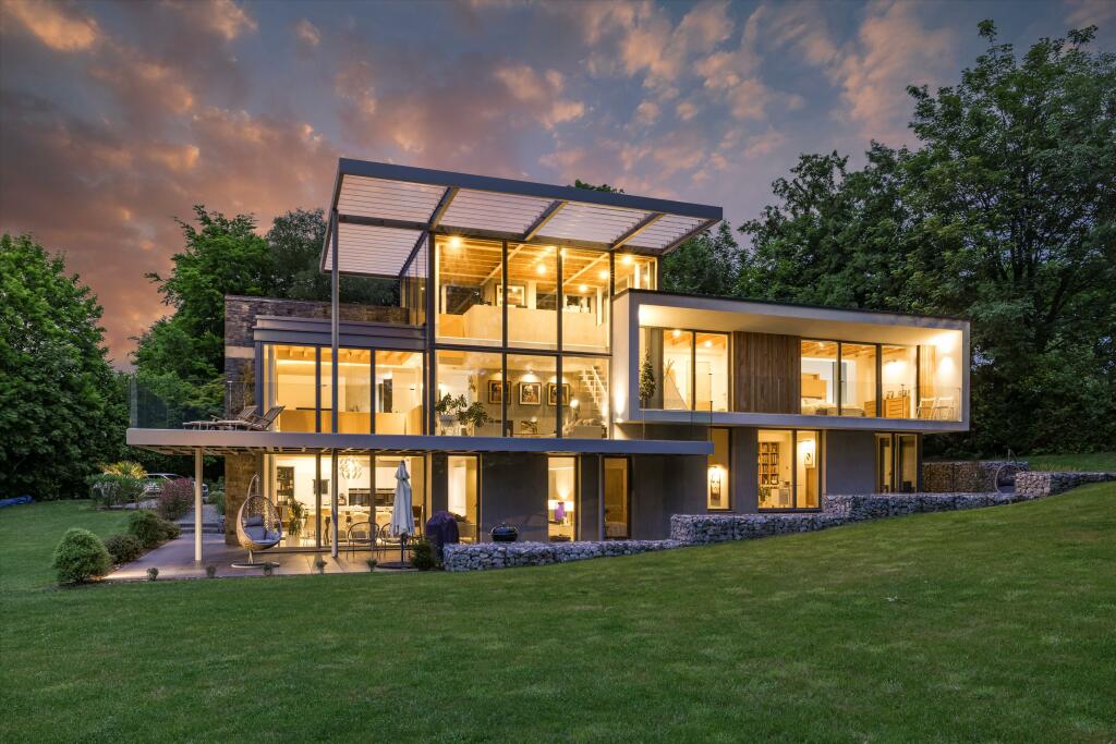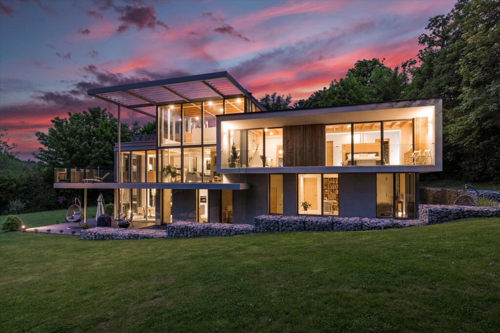 This property is a stunning contemporary home situated in a desirable location within the Surrey Hills. The architectural design is striking, featuring expansive glazing that maximizes natural light and provides breathtaking views of the surrounding countryside. The interior is equally impressive, showcasing high-quality fixtures and finishes. The property benefits from a generous plot size, providing ample space for outdoor living and entertainment. The use of natural materials such as stone and wood complements the modern aesthetic, creating a warm and inviting atmosphere. While the precise square footage is not specified, the multiple bedrooms and bathrooms indicate a substantial living area. The proximity to smaller villages and larger towns in the area offers a combination of rural tranquility and easy access to amenities and transportation. A lack of precise data on square footage makes a definitive conclusion on price-per-square-foot value challenging, however, the overall quality and location support the asking price within the context of similar properties in the area.