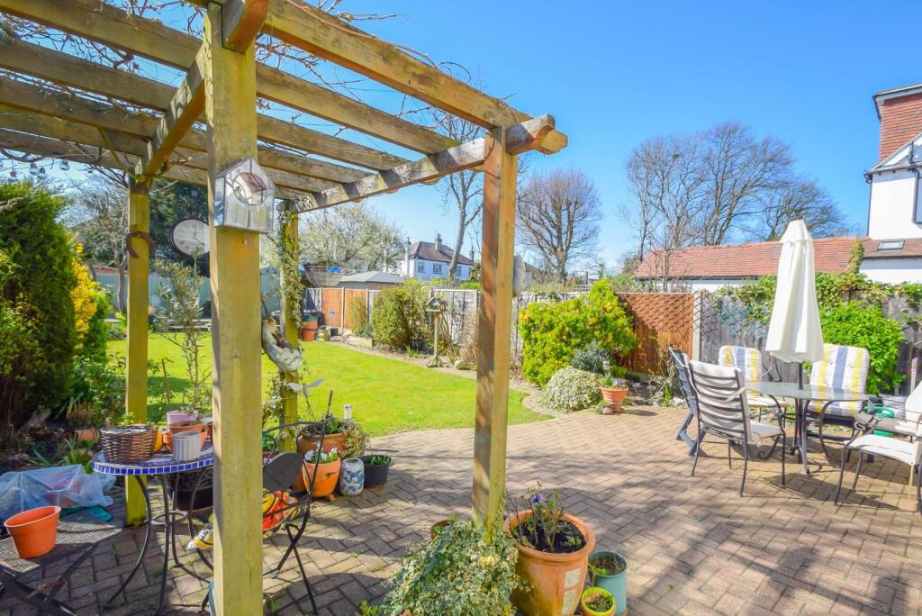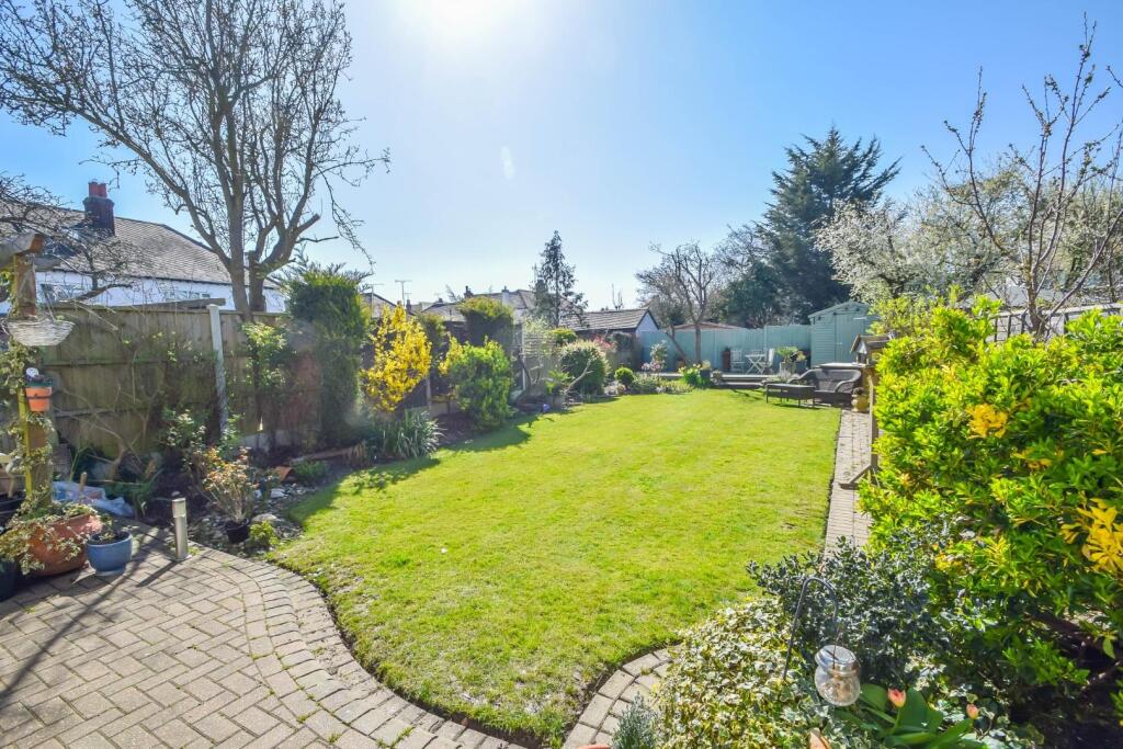 The property includes a sizeable garden with a patio area, lawn, and shed. The garden is well-maintained and provides ample outdoor space.