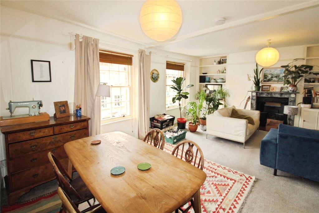 This spacious 3 bedroom flat over two floors is on the top floor reached via communal stairs. From the front door enter into the hallway with useful understairs cupboard, large living/dining room with two sash windows to the front, ornate fireplace with storage cupboards and shelving either side...