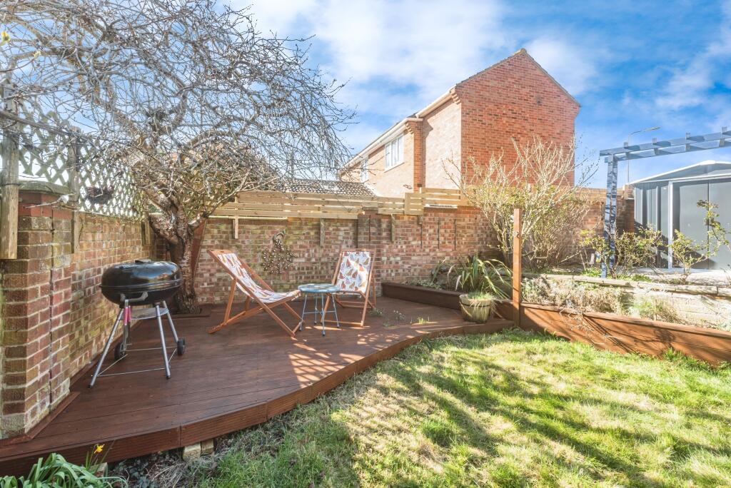 The property is located in Thatcham, West Berkshire, a town with good transport links to Newbury and London via the Great Western Railway. The nearby Spurcroft Primary School and Kennet School are both highly-rated, making the location attractive to families. The property itself appears to be in good condition, with a recently updated kitchen and bathroom. The images show a well-maintained garden, adding to its appeal. Considering the average price per square foot in the area is £362, and the property is listed at £450,000 with 866.49 sqft, the price seems slightly above average but not unreasonable given the property’s condition and location. The presence of a garden also contributes positively to the overall value. The property benefits from a good-sized garden, as shown in the images.